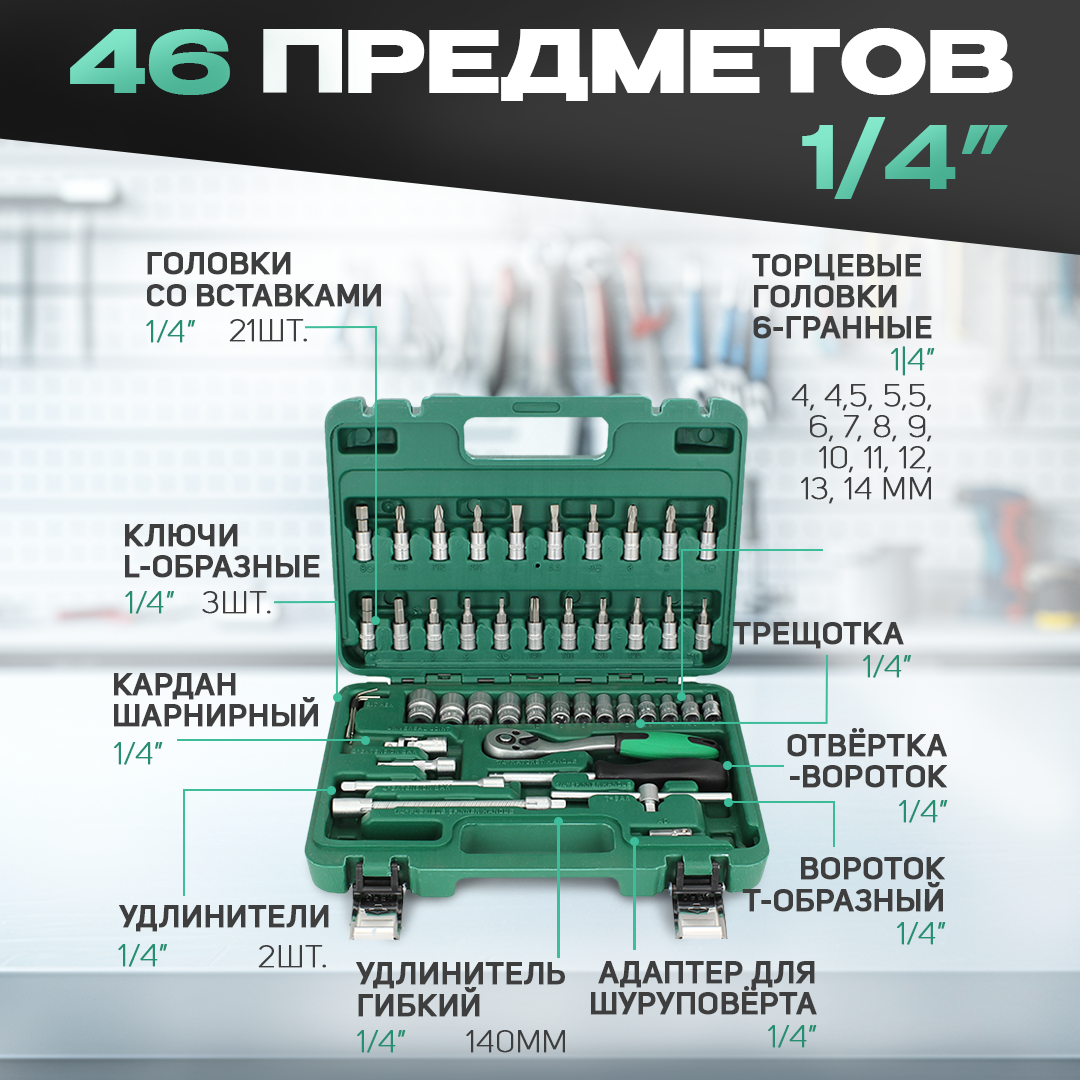 Набор инструментов для автомобиля (46 предметов) 1/4 24 зуба ключ трещетка информация: