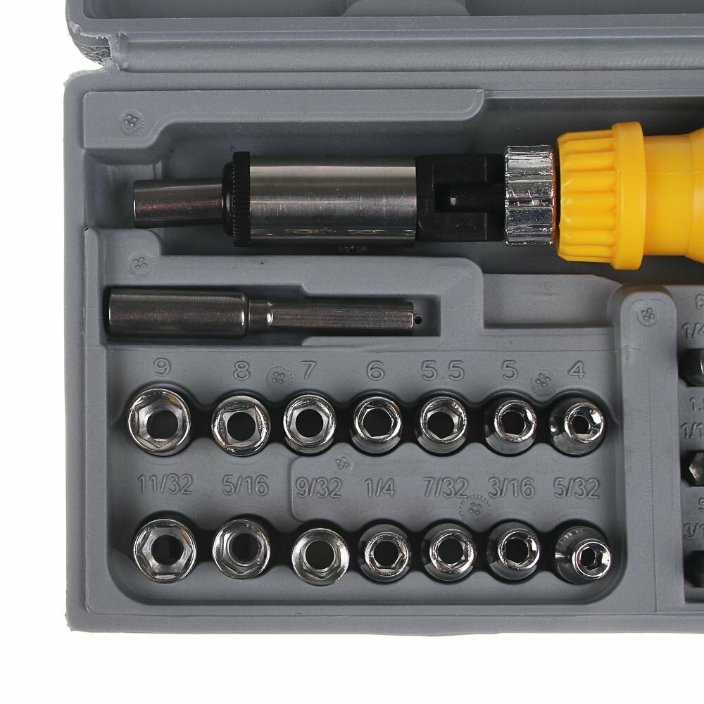 Рокот Набор инструментов, 41 предмет реверсивная отвертка, магнитный держатель, торцевые головки и биты информация: