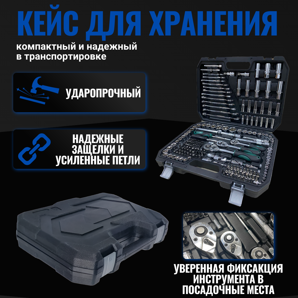 Набор инструментов для автомобиля и дома 219 предметов с трещоткой в чемодане, набор ключей и головок профессиональный информация: