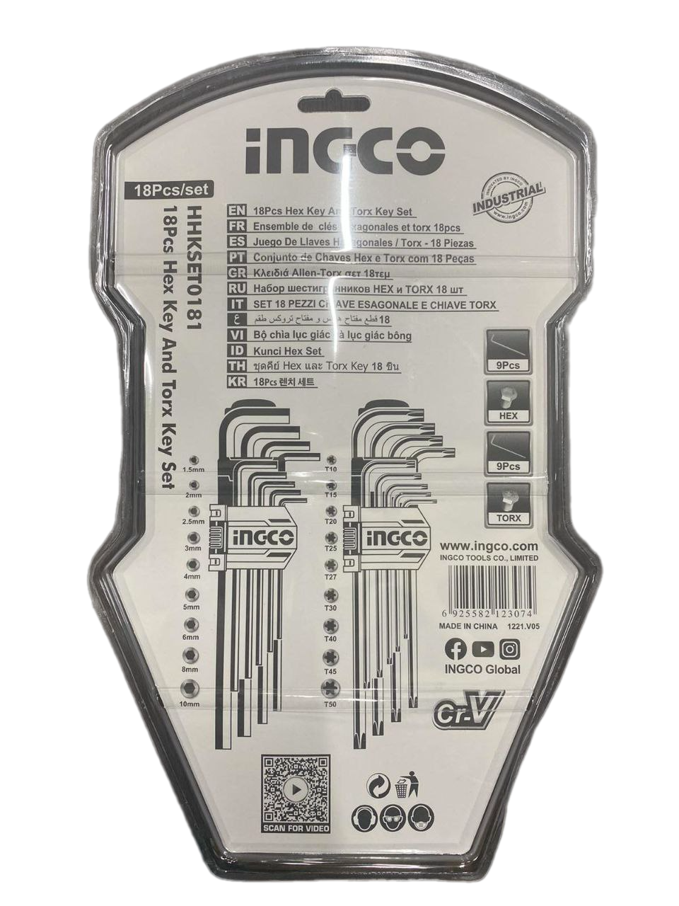 Набор шестигранных ключей INGCO, хромованадиевая сталь, 18 штук информация: