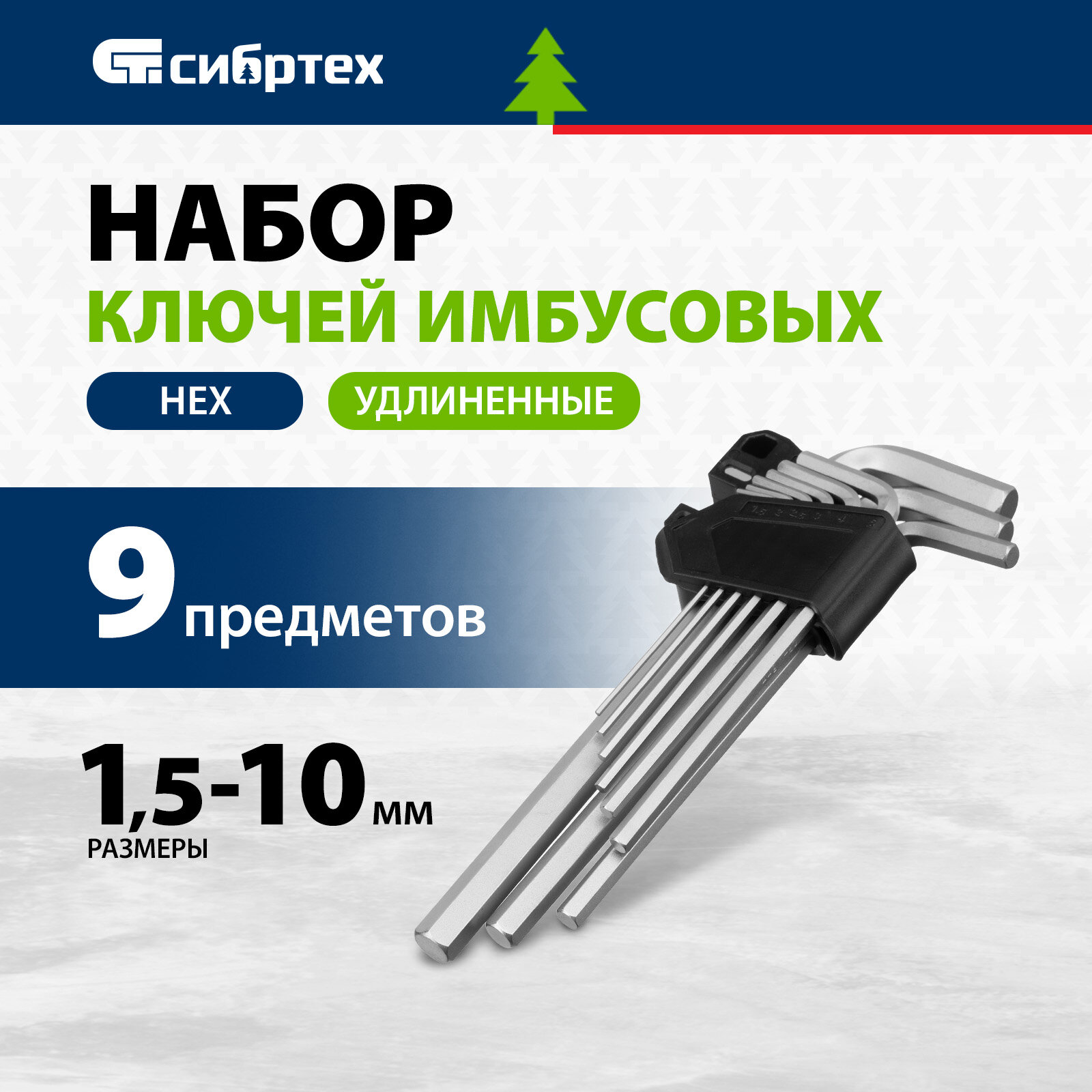 Набор ключей имбусовых Сибртех HEX, 1,5-10 мм, CrV, 9 шт, удлиненные 123687 информация: