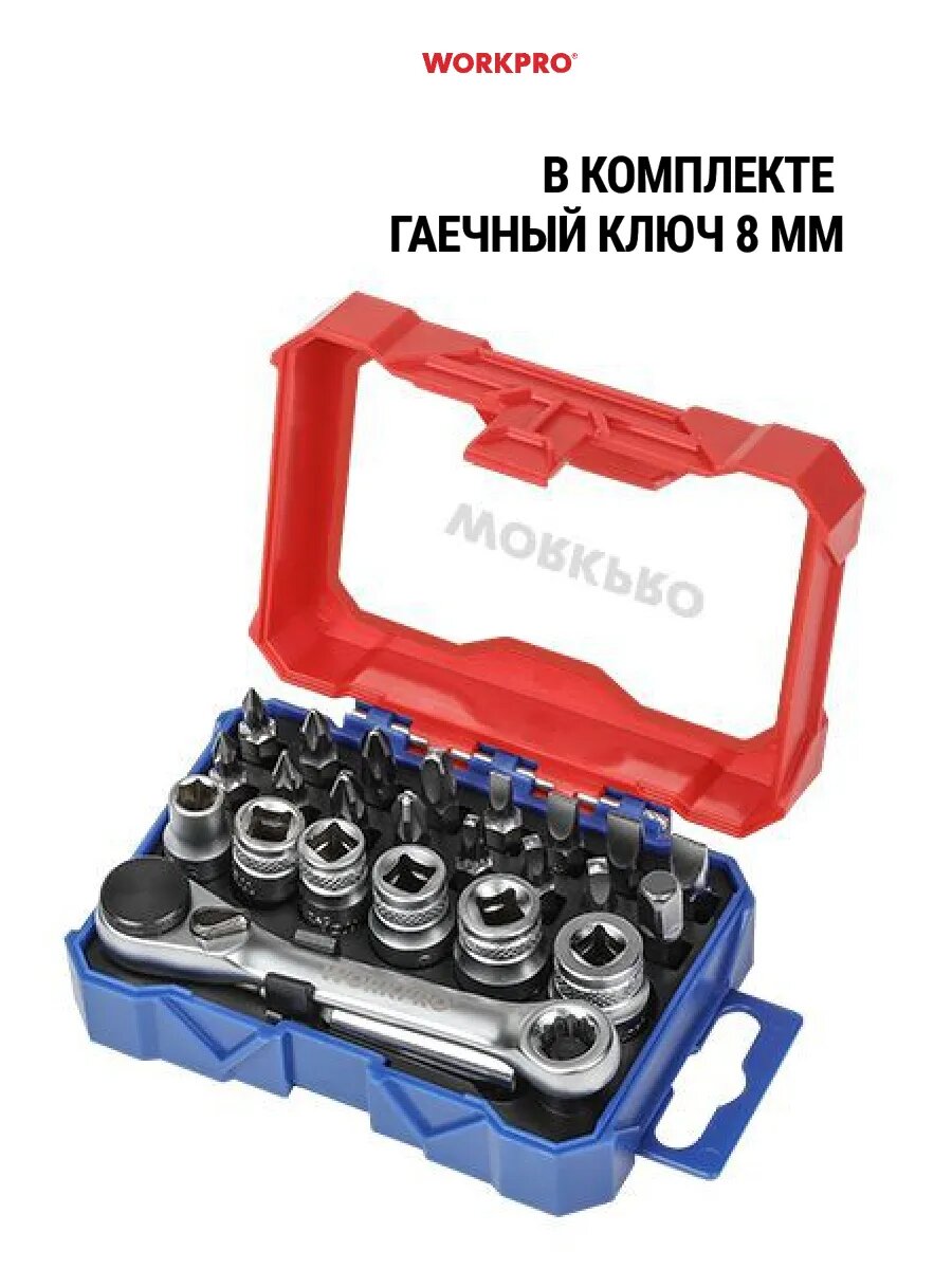 10 цен на Набор бит 24 шт с трещоткой WORKPRO WP200535, в пластиковой коробке
