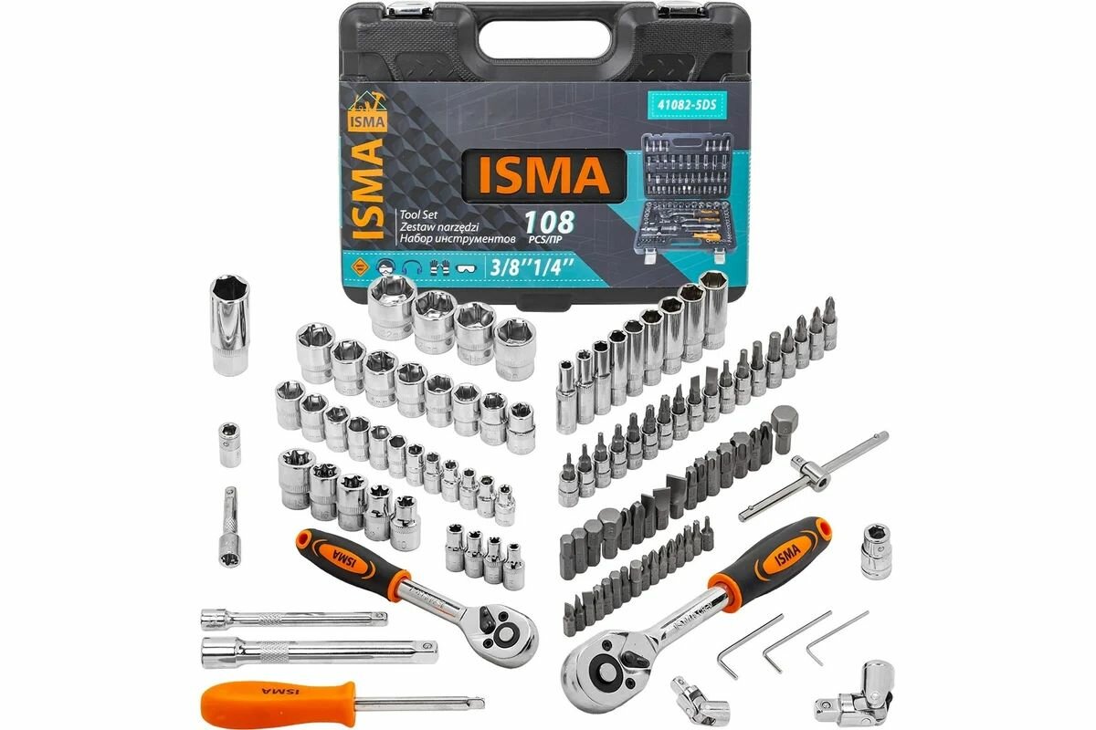 Набор инструментов ISMA, хромованадиевая сталь, 108 предметов, кейс информация: