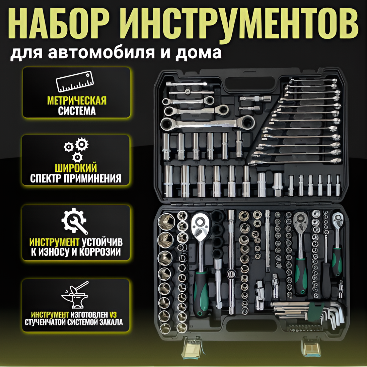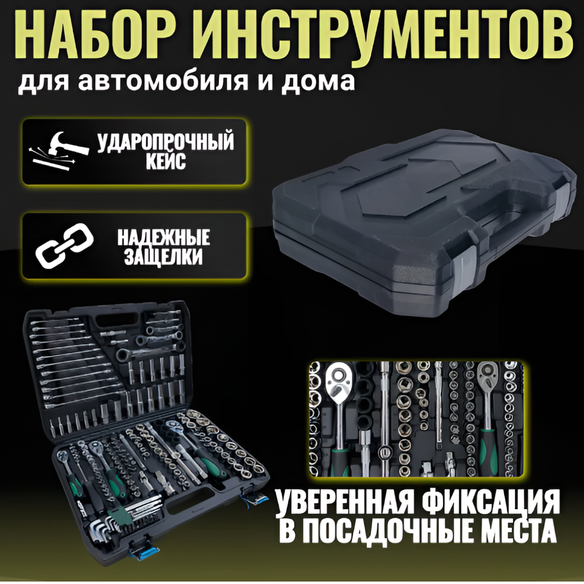 Отзывы на Набор инструментов для автомобиля и дома мужской 151 предмет в чемодане, набор ключей и головок с трещоткой