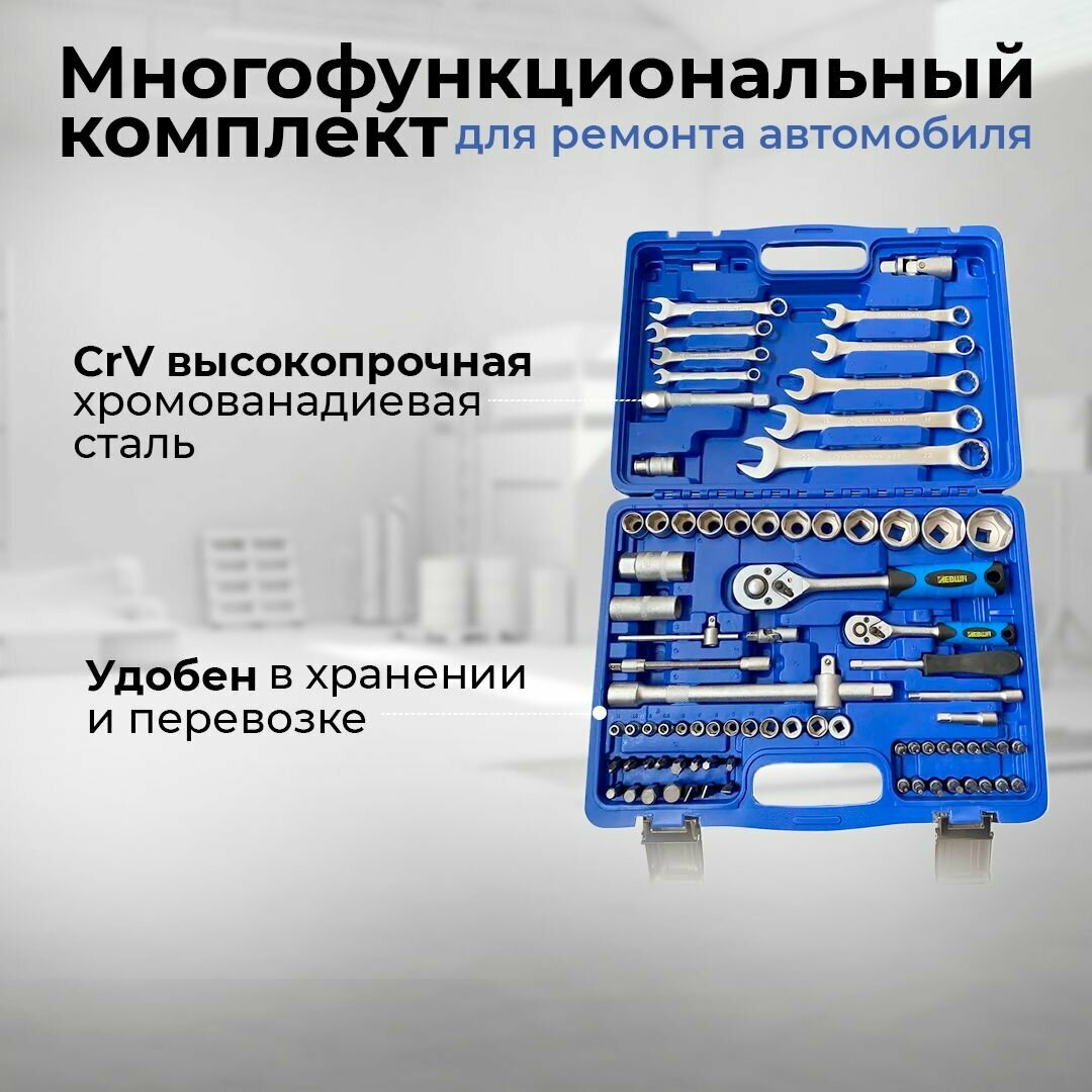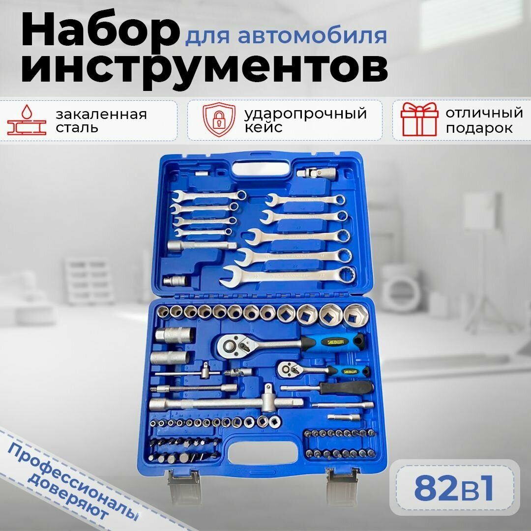 10 цен на Набор инструментов для автомобиля и дома универсальный 82 предмета 1/4" 1/2" ключ, головки, трещетка