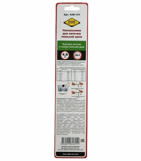 Напильники для заточки цепи 4,8 мм - 3/16 уп. 2шт в блистер DDE 648-151 информация: