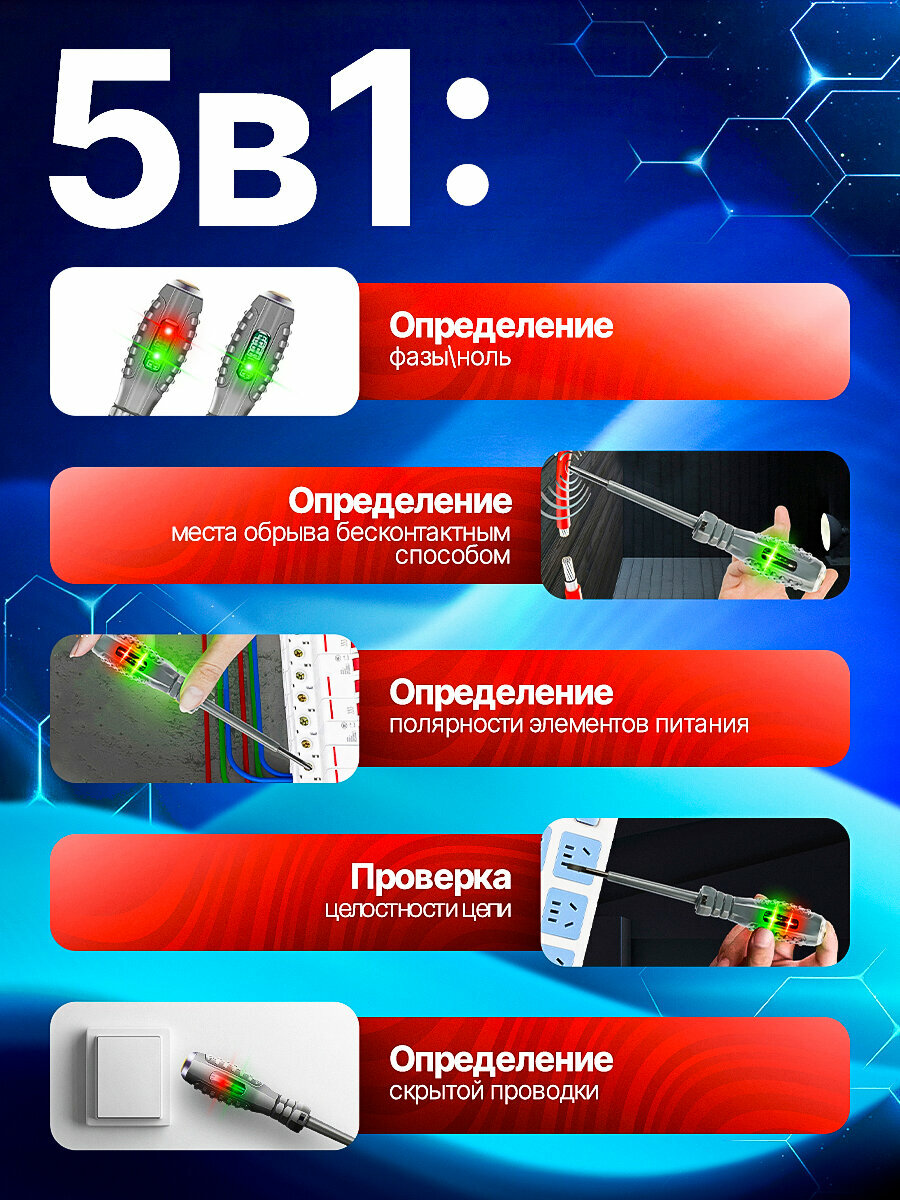 Отзывы на Индикаторная отвертка "5 в 1", магнитная, диэлектрическая, плоская + крестовая 2 шт.