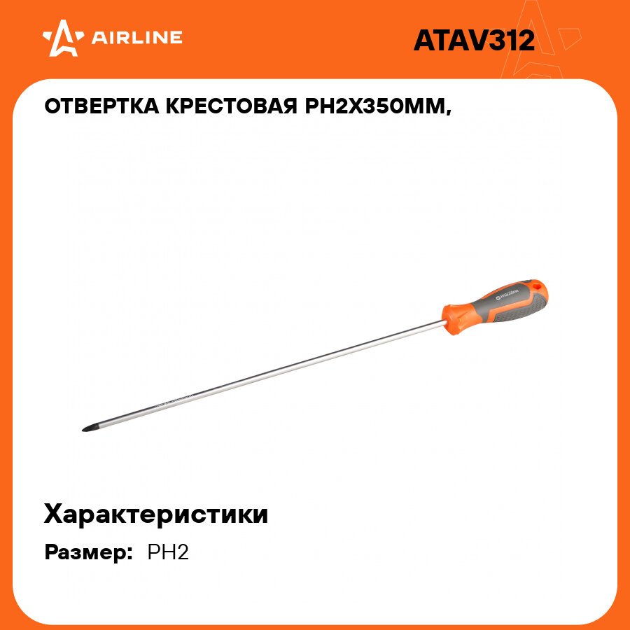 Отзывы на Отвертка крестовая PH2x350мм, магнитный наконечник, пласт. подвес ATAV312 AIRLINE