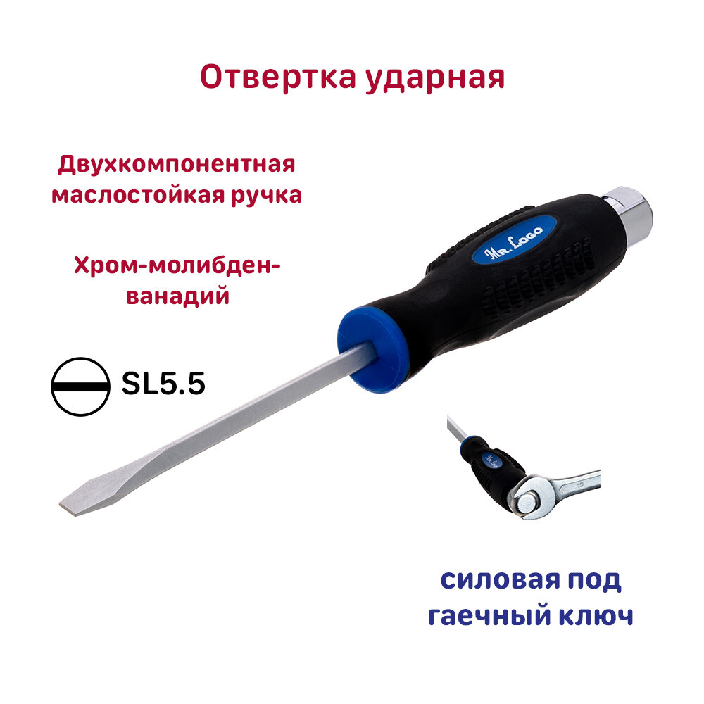 Отзывы на Отвертка ударная SL5.5 x 100 мм Mr.Logo (силовая под гаечный ключ)