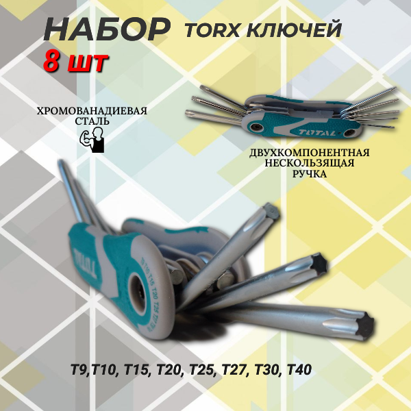 10 цен на Набор отверток TOTAL TORX, складной, 8 бит, Cr-V, хромированный, с термообработкой