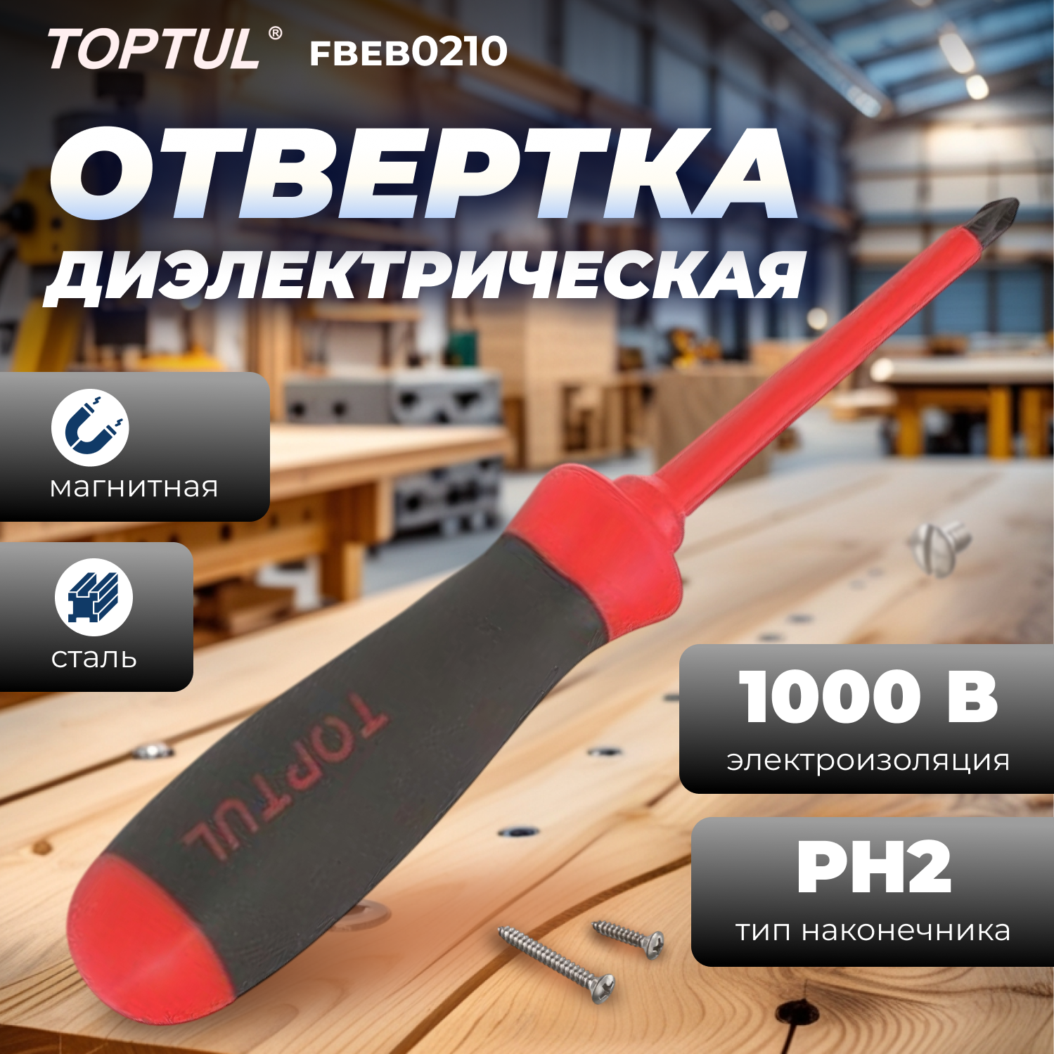 Отзывы на Отвертка крестовая "+" №2 100 мм PH2 диэлектрическая TOPTUL (FBEB0210)