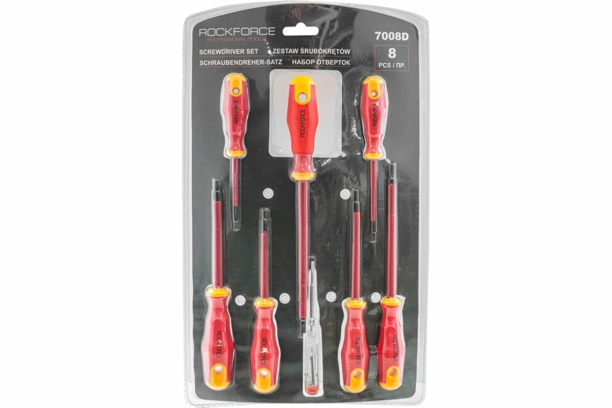 10 цен на Набор отвёрток диэлектрических ROCKFORCE RF-7008D, 8 предметов, PH 0, 1, 2, SL 3, 4, 5.5, 6.5
