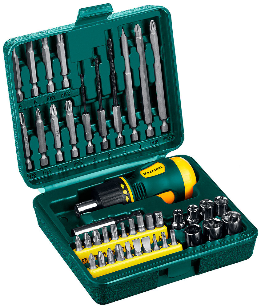 10 цен на Отвертка реверсивная Kraftool Kompakt-43 с насадками, 43 предм, 25556-H43