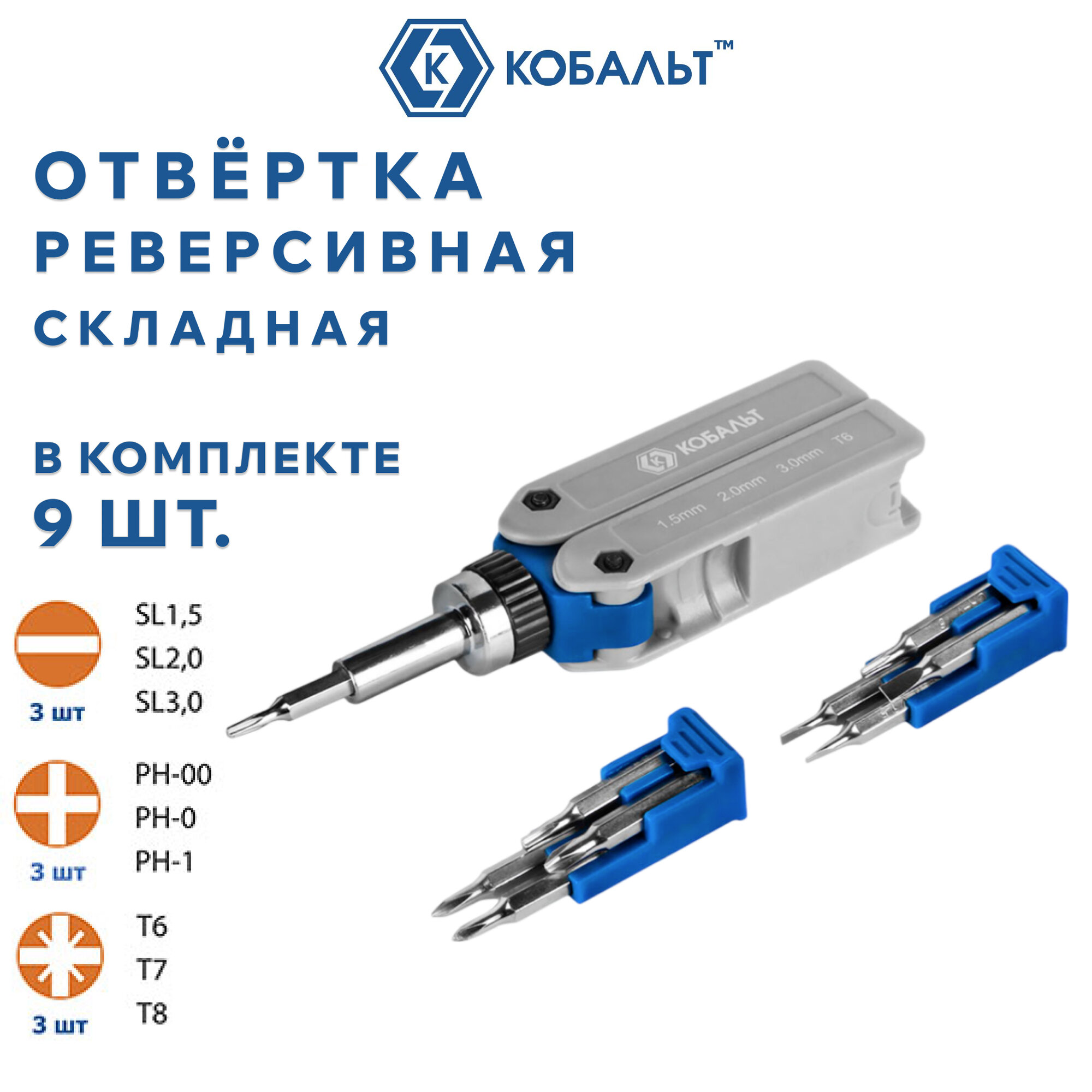 Отзывы на Отвертка реверсивная КОБАЛЬТ складная, с набором бит (9 штук) для точных работ, CR-V.