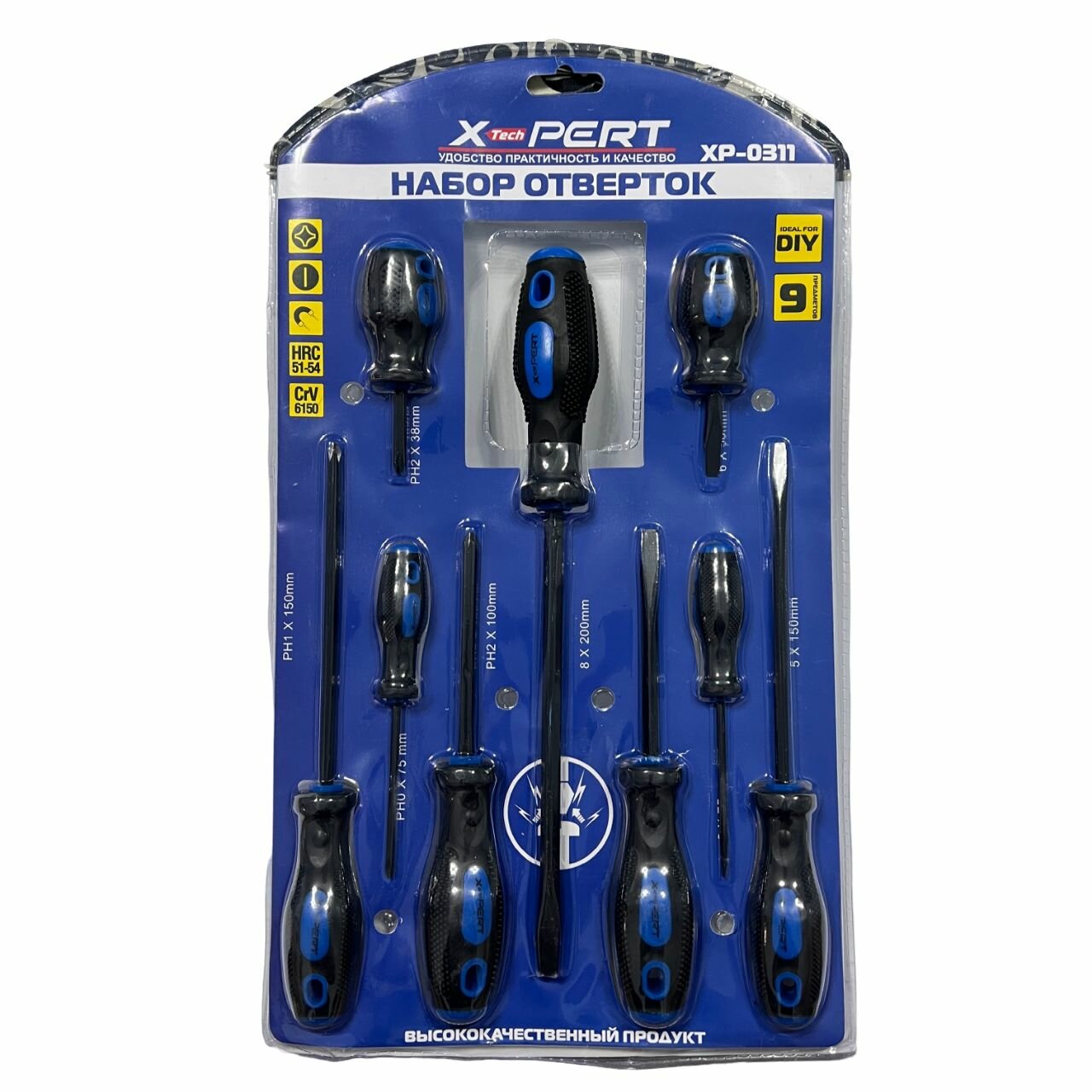 Набор отверток из хромованадиевой стали X-PERT, 9 предметов (крестовые, плоские(шлиц)) с намагниченным наконечником информация: