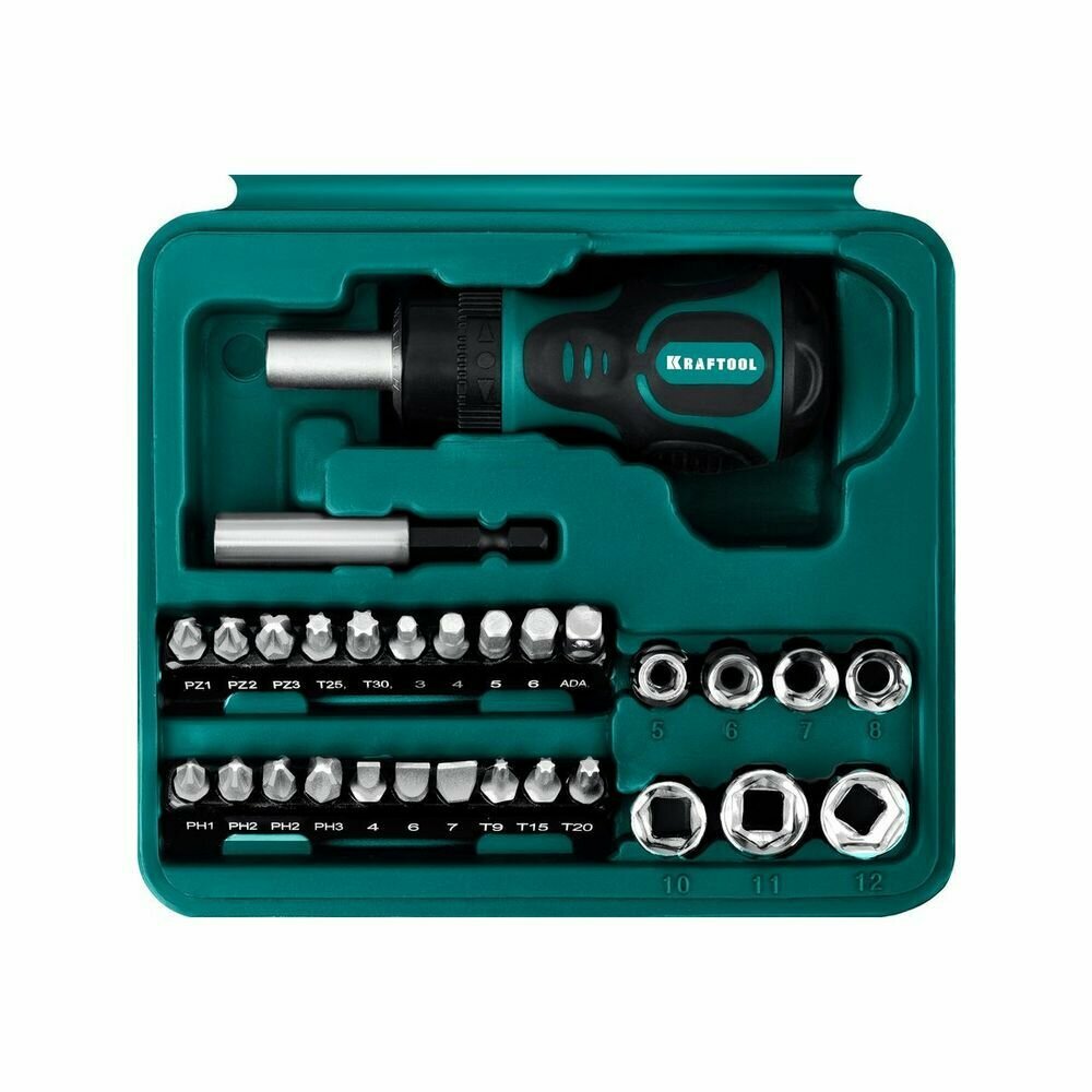 Набор: реверсивная отвертка с насадками 29 шт, в кейсе, Kompakt-29 KRAFTOOL 25556-H29 информация: