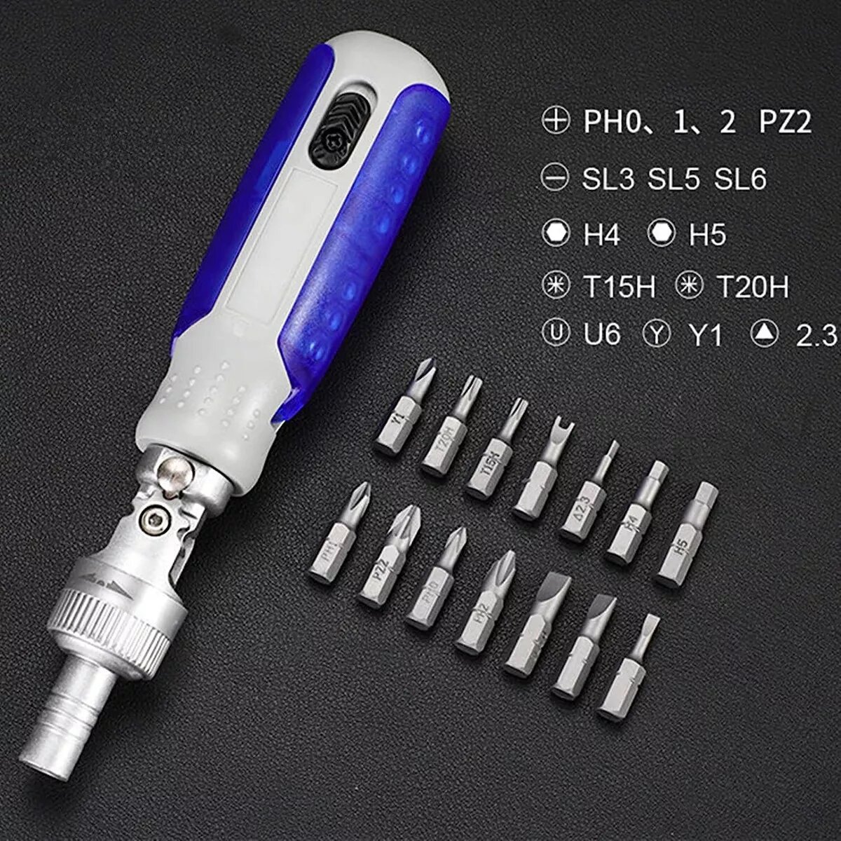 10 цен на Отвертка, многофункциональная, комбинированная, храповый механизм, 15 в 1
