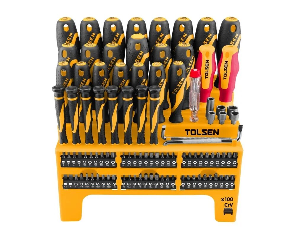 10 цен на Набор отверток и вставок (бит) TOLSEN GRIPro на подставке, 100 предметов