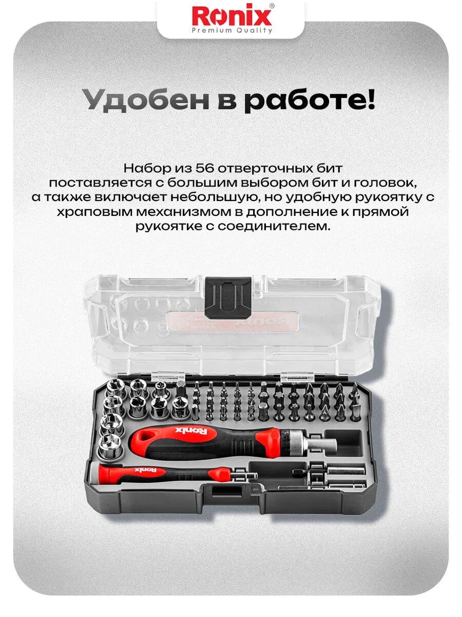 Отзывы на Отвертка с набором магнитных бит и головок реверсивная Ronix прецизионная
