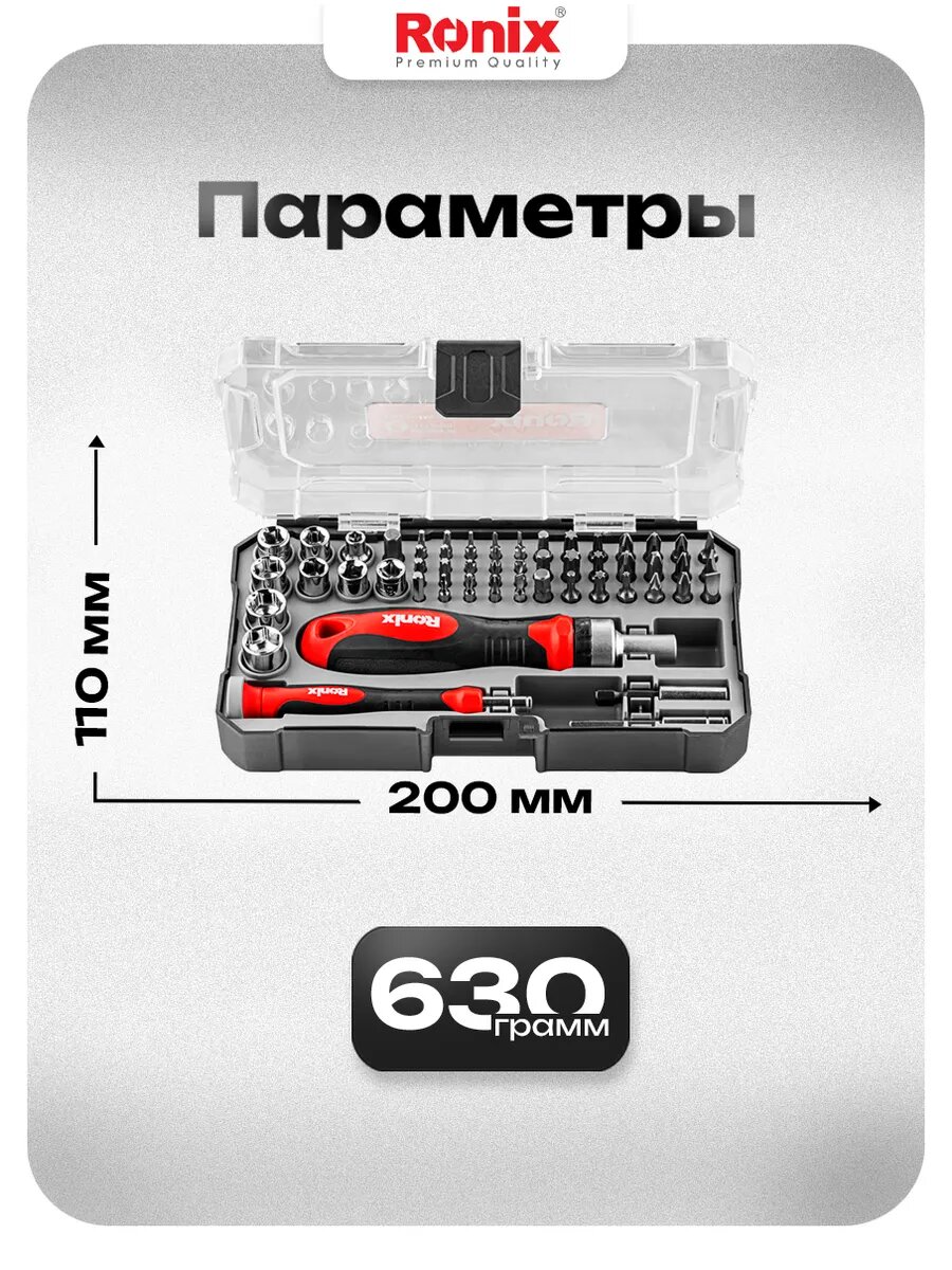 Отвертка с набором магнитных бит и головок реверсивная Ronix прецизионная информация: