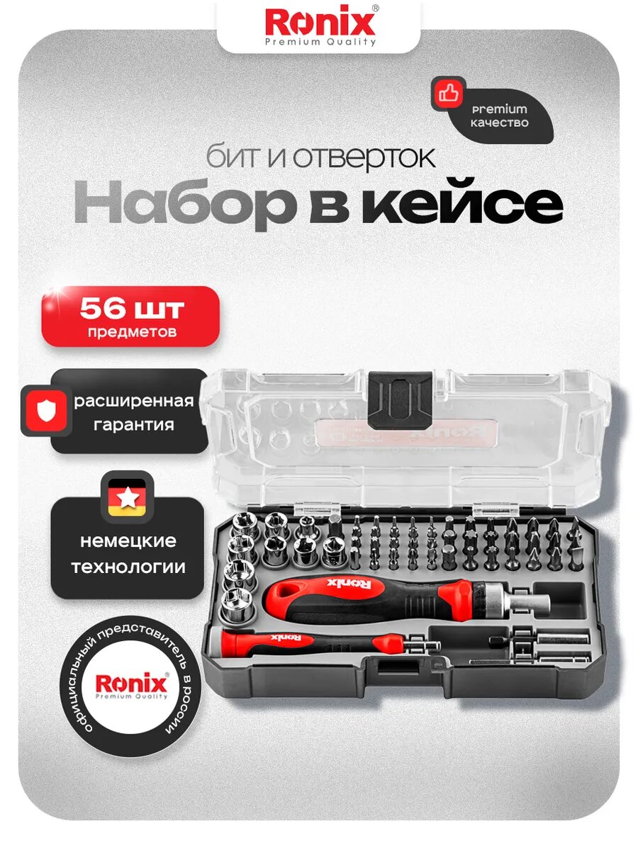 10 цен на Отвертка с набором магнитных бит и головок реверсивная Ronix прецизионная