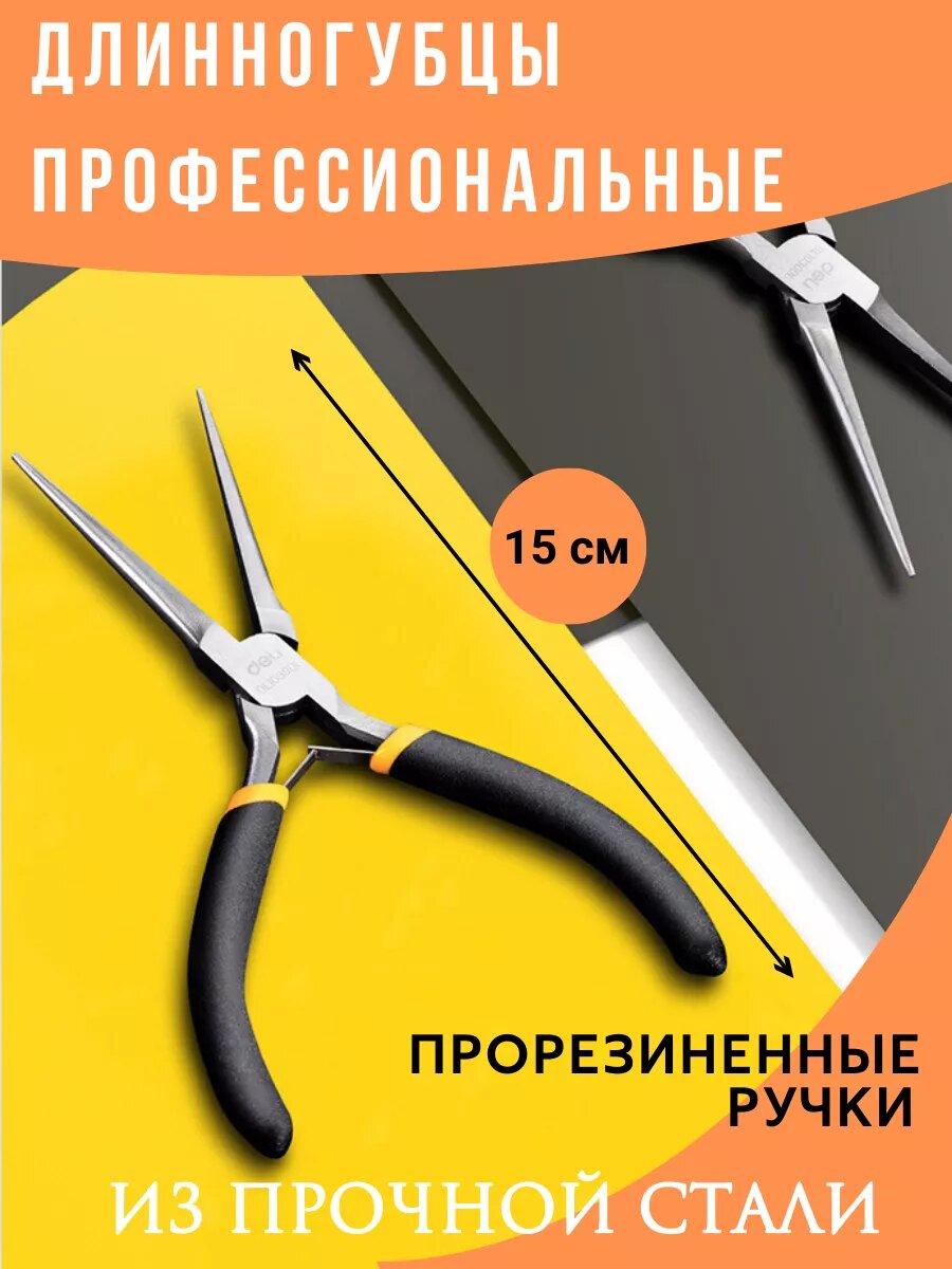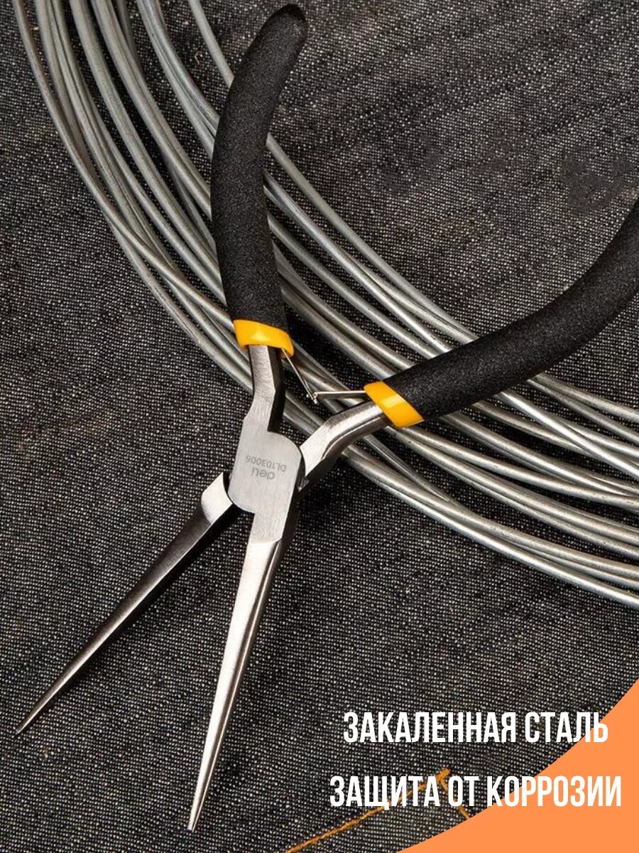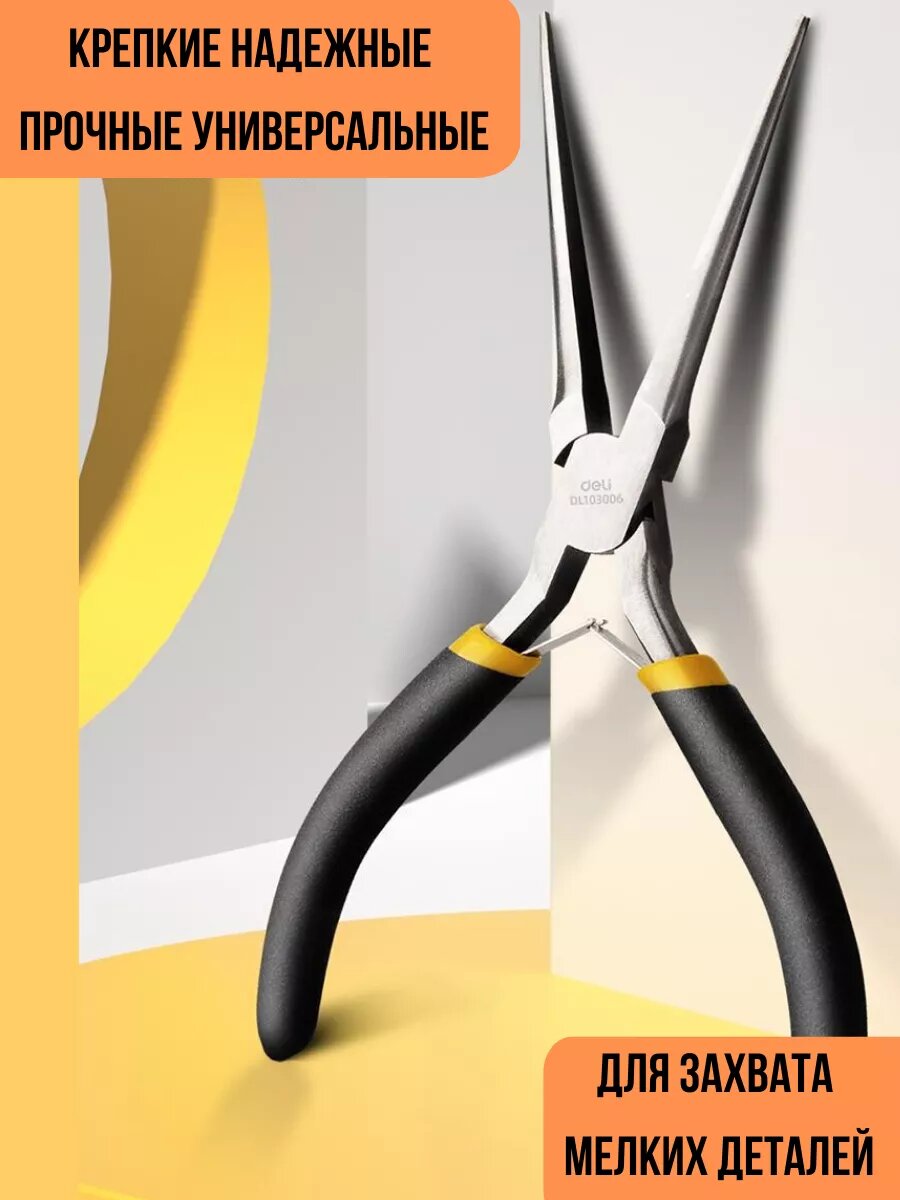 Удлиненные плоскогубцы 200мм Deli DL0102 двухкомпонентная прорезиненная рукоять