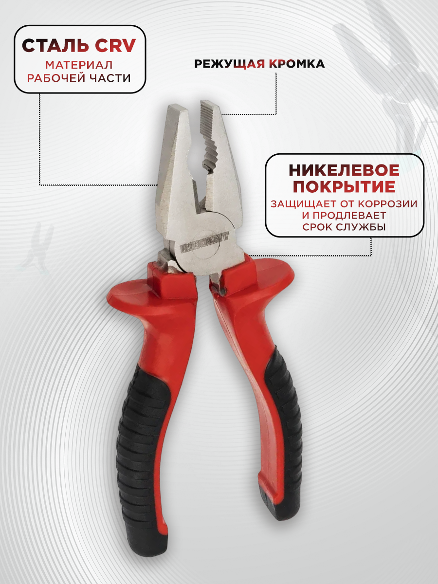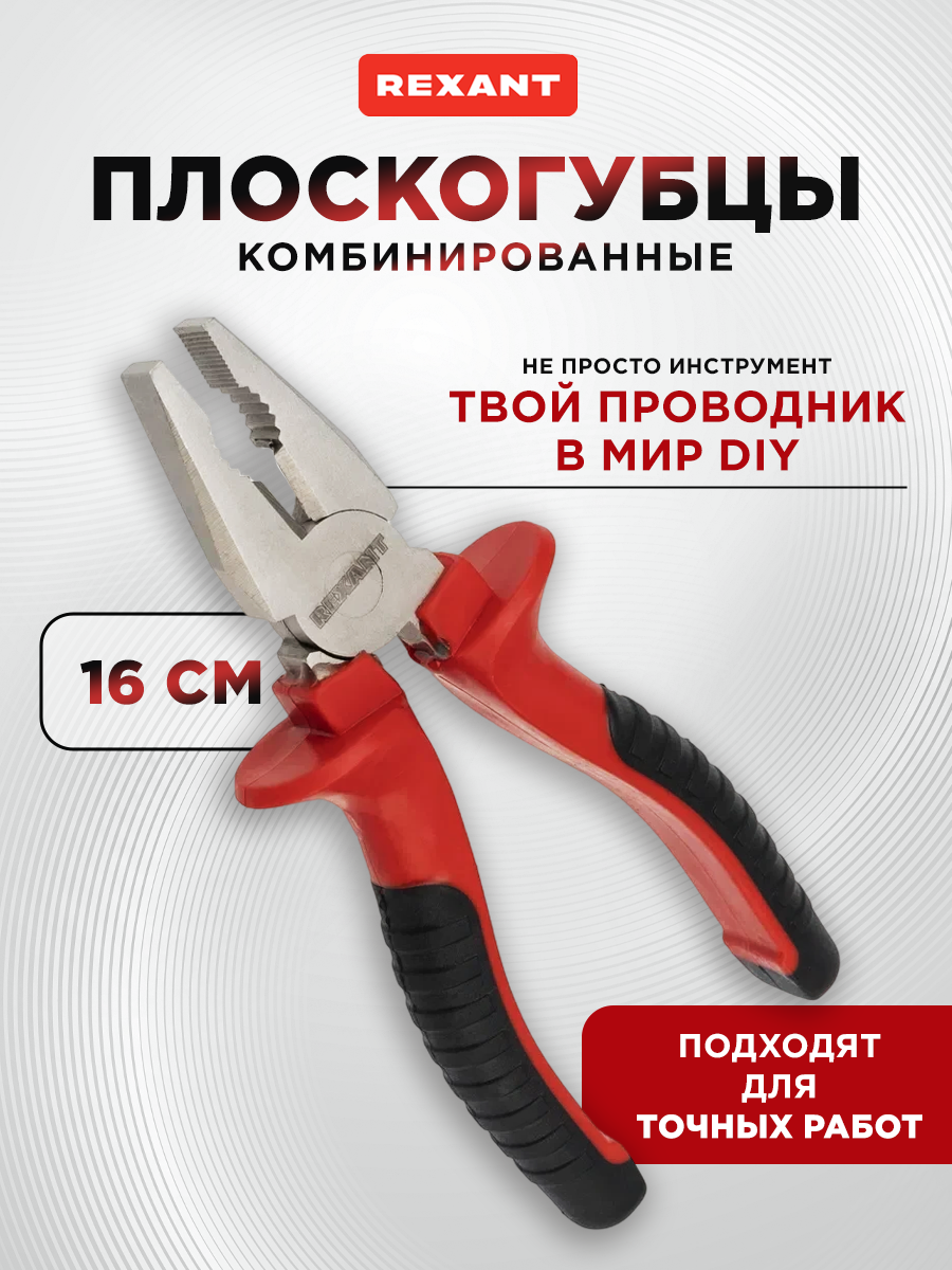 Комбинированные никелированные плоскогубцы с двухкомпонентными рукоятками 160 мм REXANT информация: