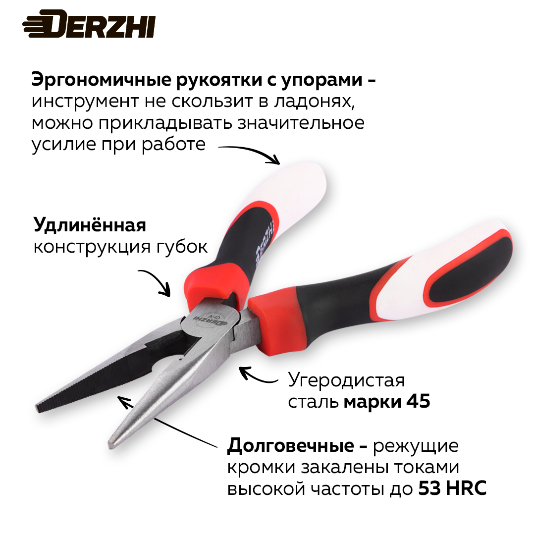 Плоскогубцы "DERZHI", удлиненные губки, легированная сталь, 160мм информация: