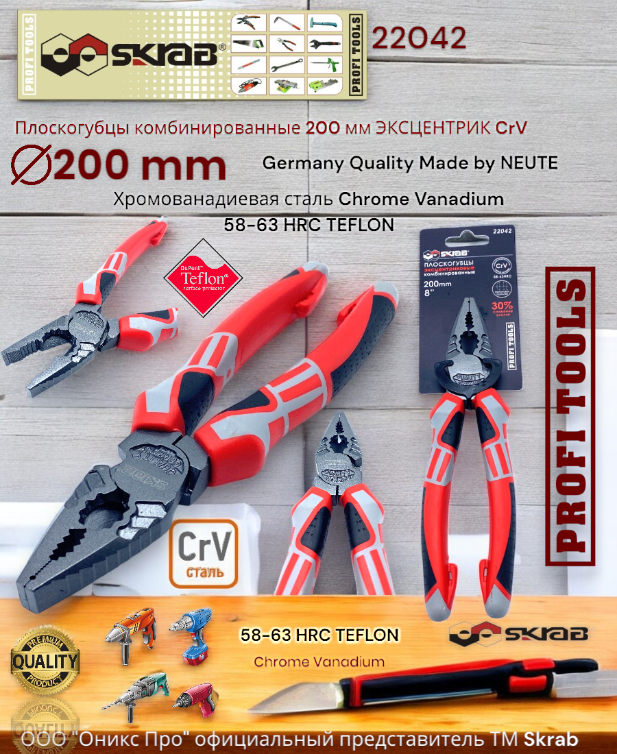 Плоскогубцы комбинированные 200 мм эксцентрик CrV Тефлон 22042 информация: