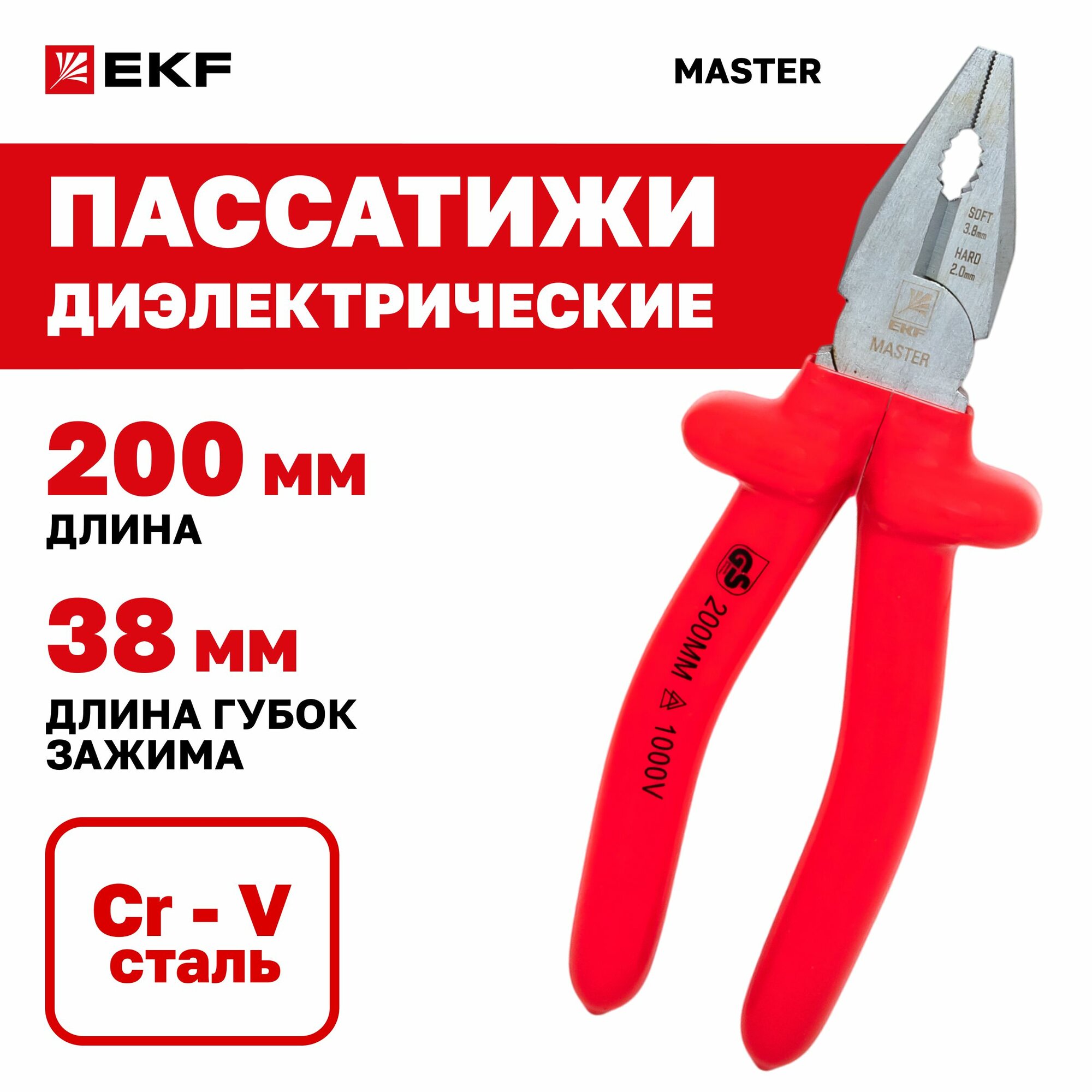 Пассатижи диэлектрические (изолированные) Master 200 мм до 1000В EKF для электрика информация: