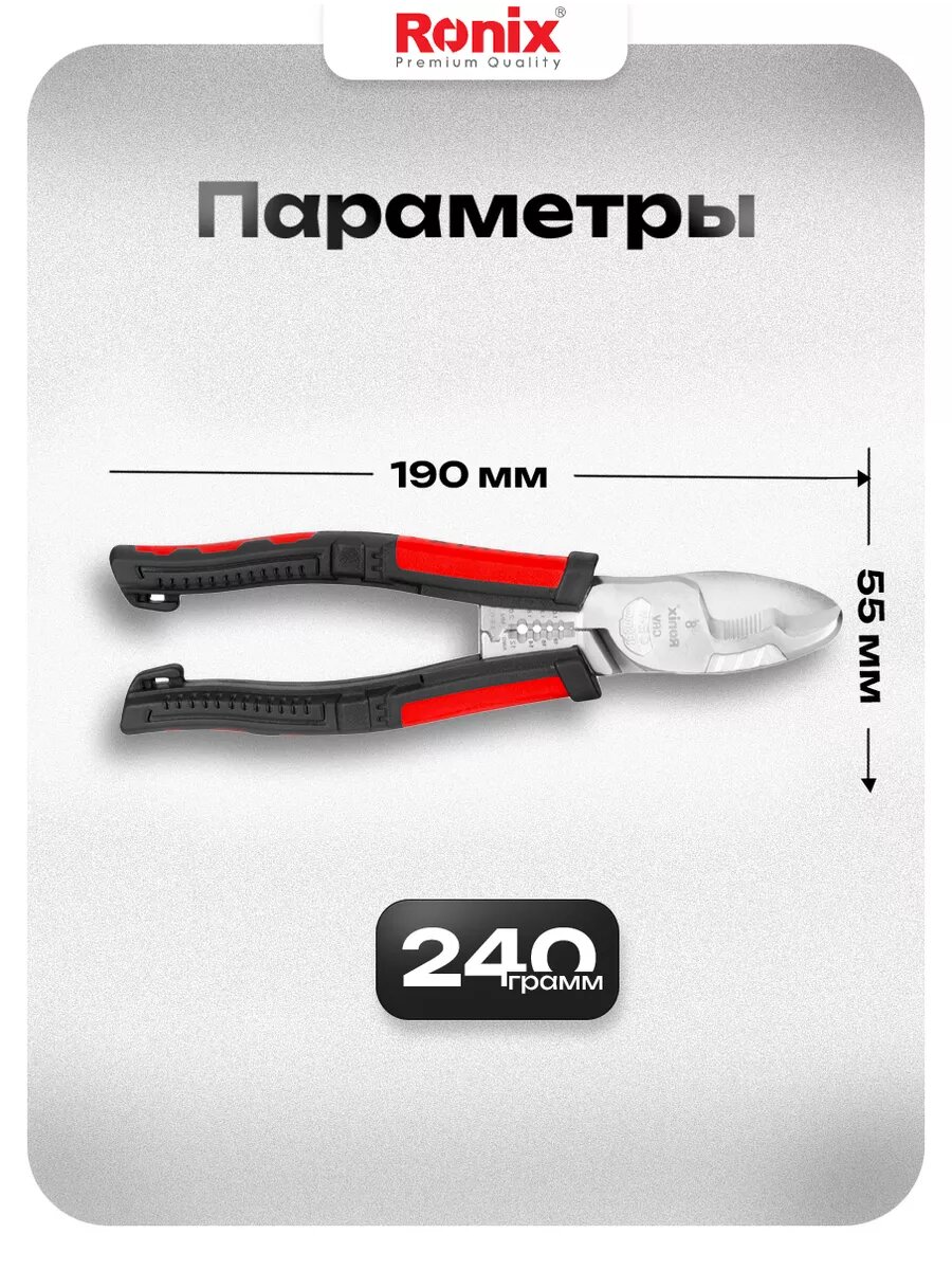 Кабелерез многофункциональный Ronix, стриппер, длина 190 мм, Cr-V сталь информация: