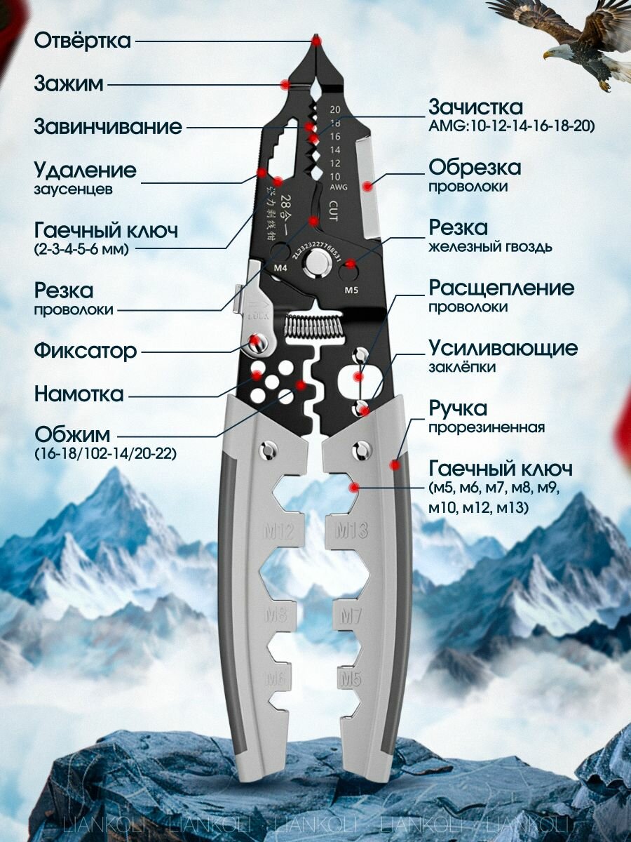 Отзывы на Плоскогубцы многофункциональные 28 в 1, Пасатижи многофункциональный, Стриппер для зачистки проводов, Мультитул, Liankoli