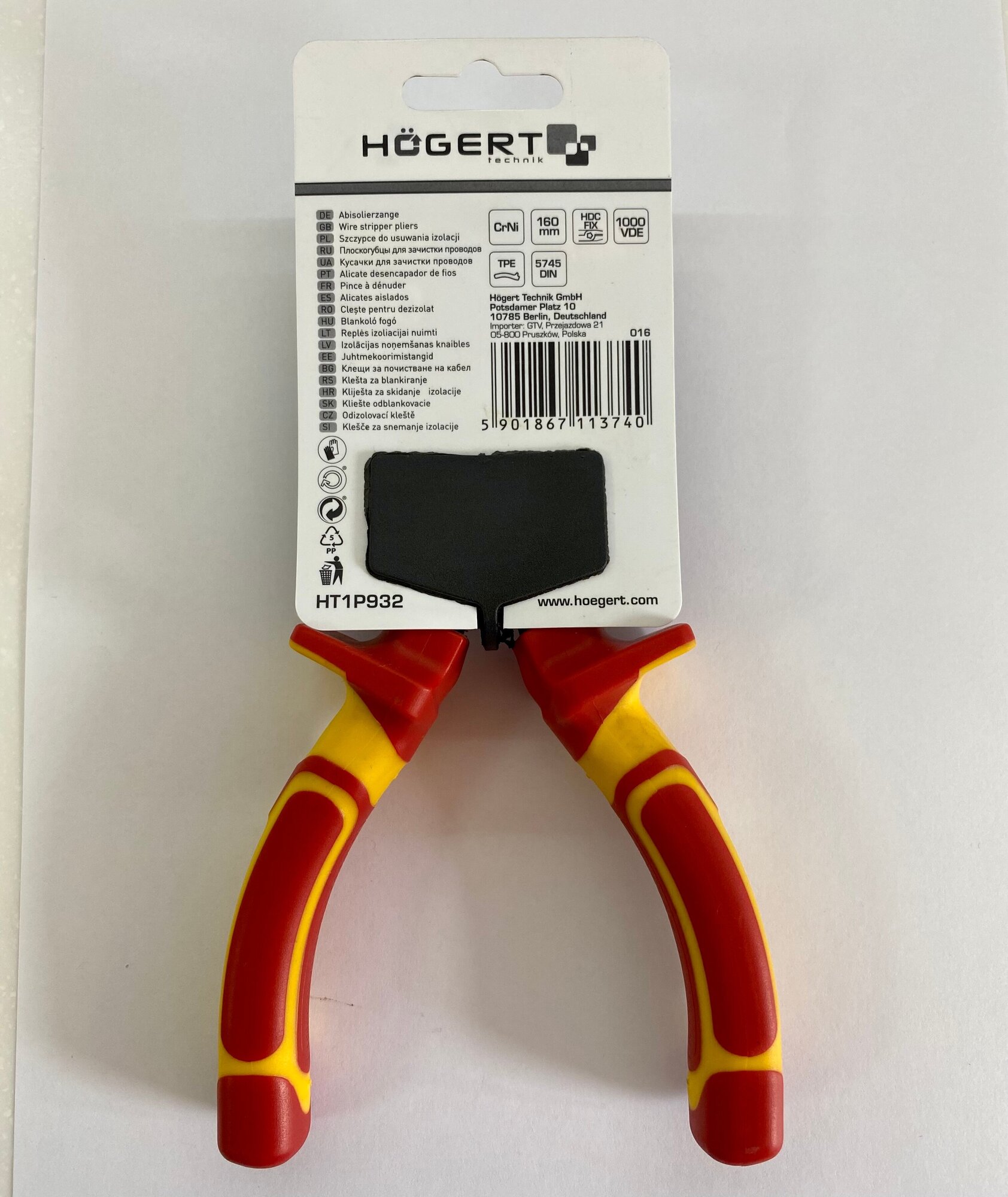 Плоскогубцы для зачистки проводов изолированные 1000V HOGERT / HT1P932 информация: