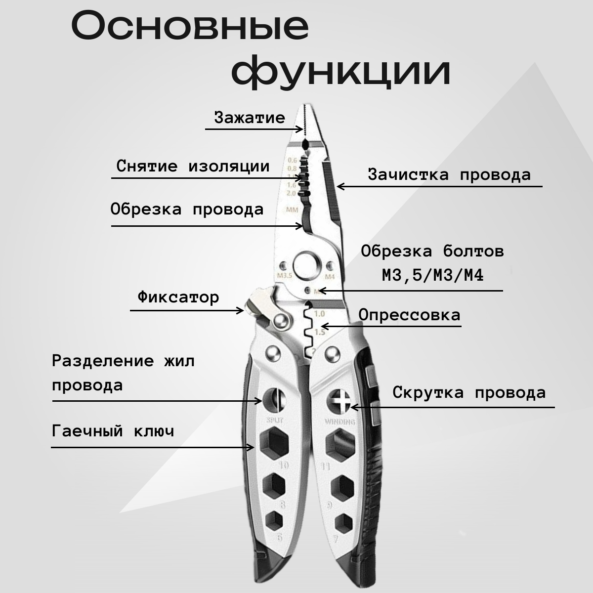Отзывы на Плоскогубцы многофункциональные 9 в 1 / стриппер/ кримпер/ кабелерез/ кусачки/ пассатижи/ инструмент для электрика