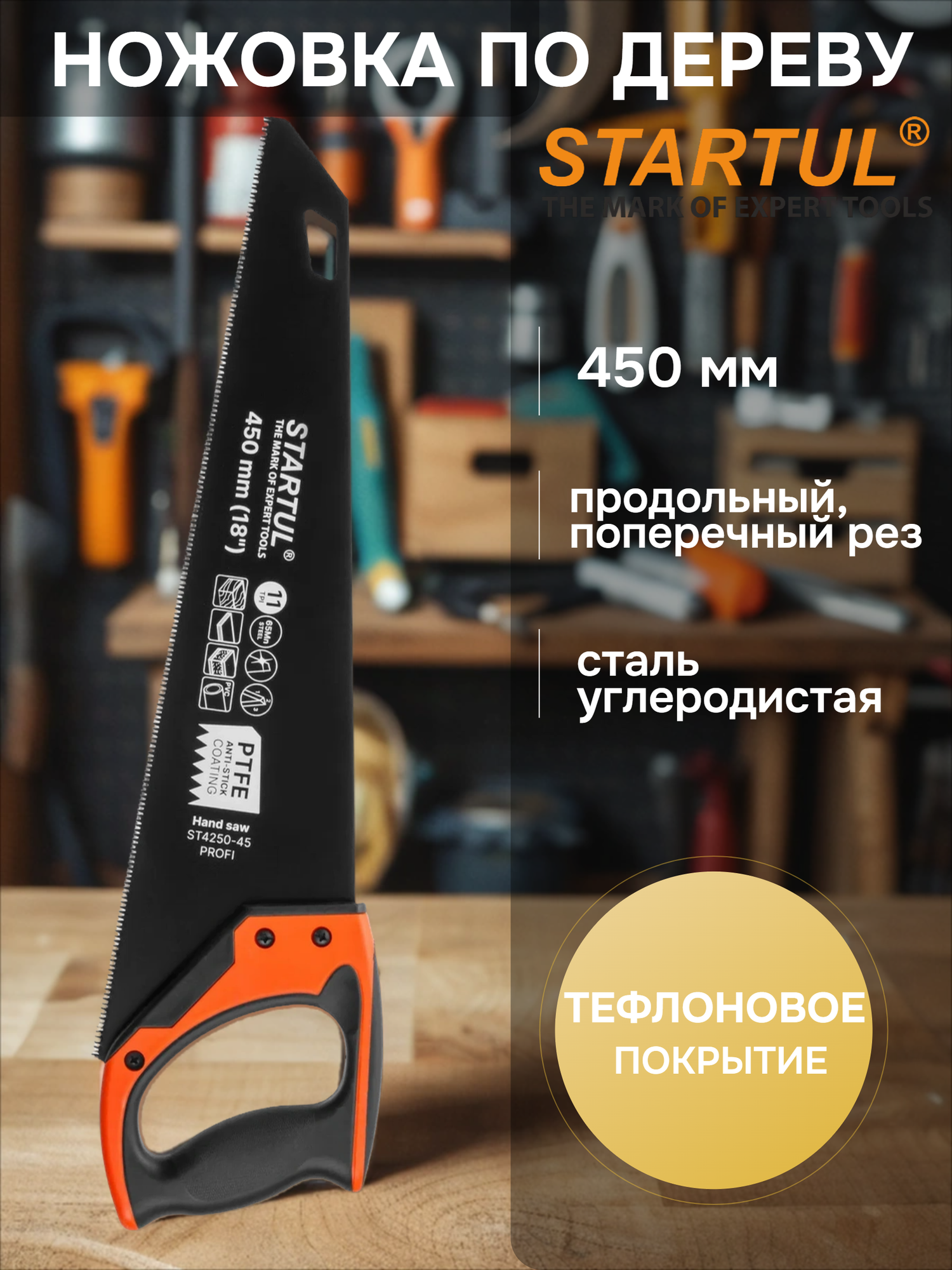 Ножовка по дереву STARTUL Profi 450 мм 11 TPI с мелким зубом (ST4250-45) информация:
