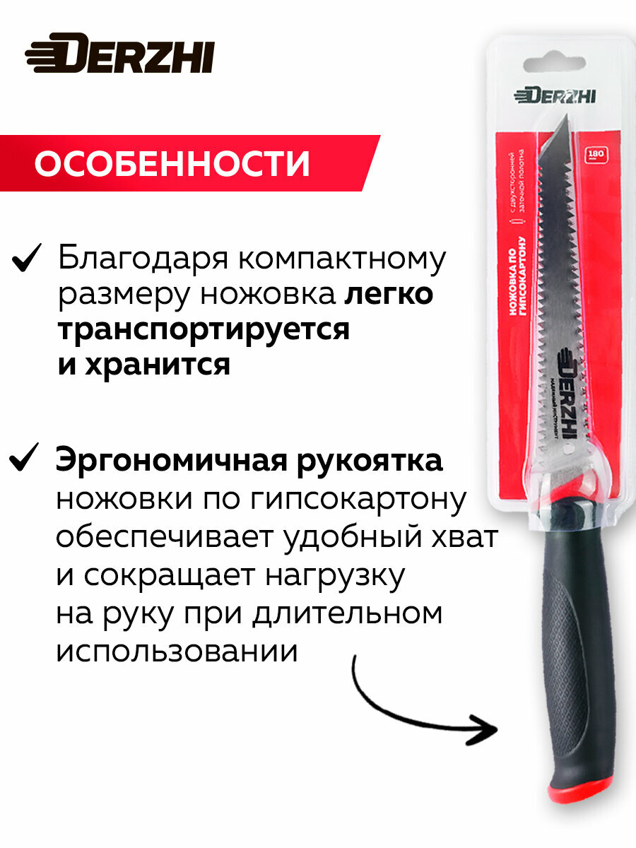 Ножовка по гипсокартону 180 мм DERZHI информация: