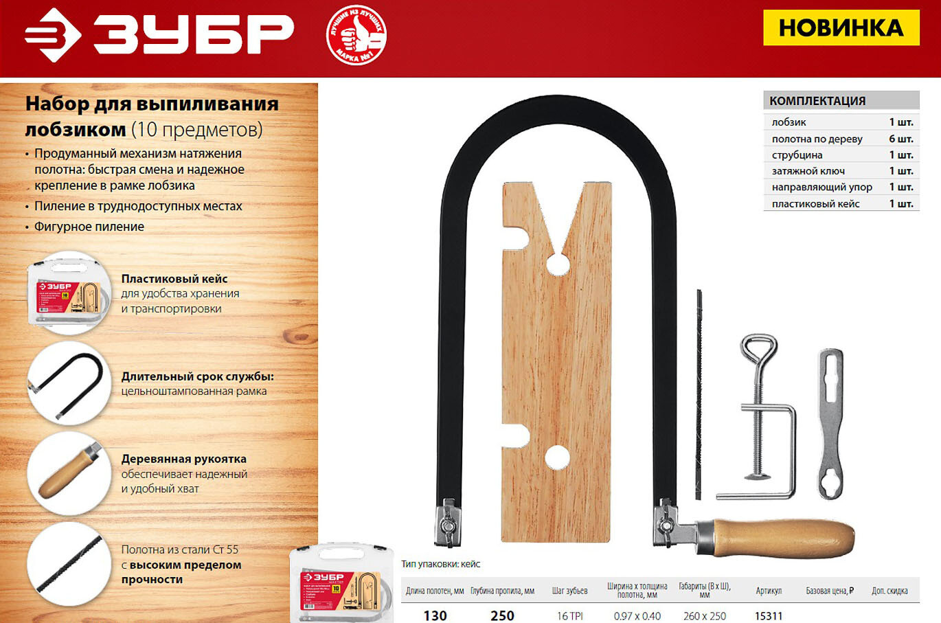 Набор для выпиливания ЗУБР 130х250 мм, 10 предметов, 15311 Мастер информация: