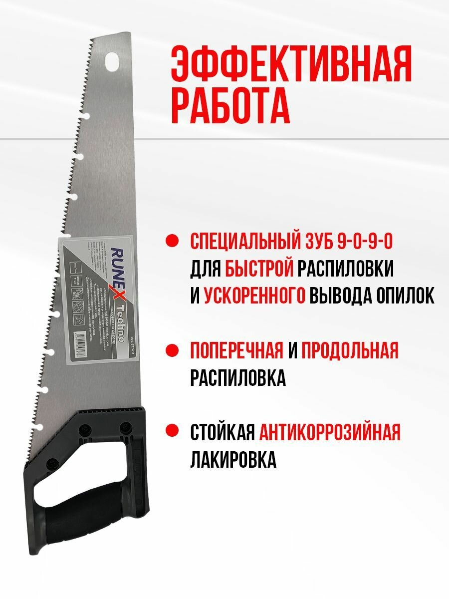 Ножовка по дереву Runex Techno 400мм, спец. зуб 9-0-9-0, шаг зуба 3,5мм (7TPI) информация: