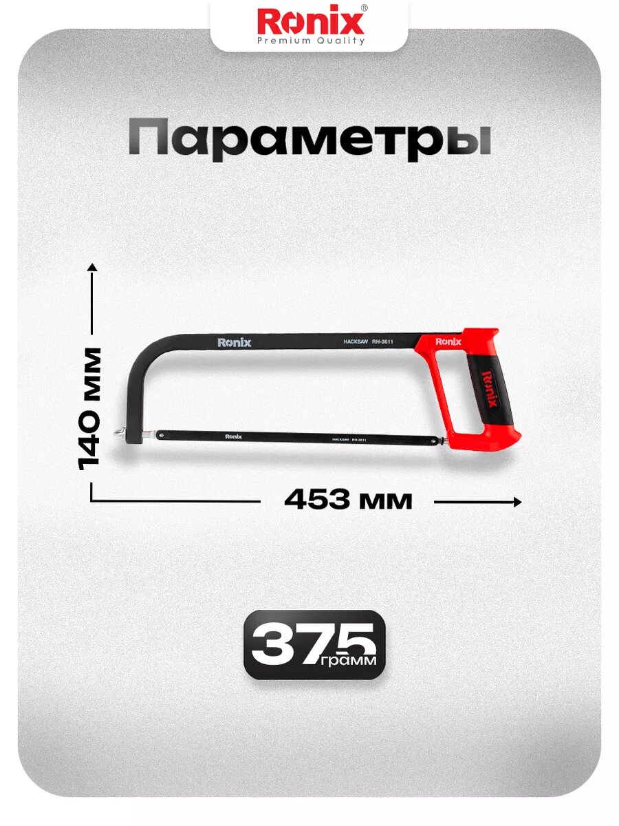 Ножовка по металлу Ronix 300 мм биметалл шаг зуба 24TPI (пила универсальная) информация:
