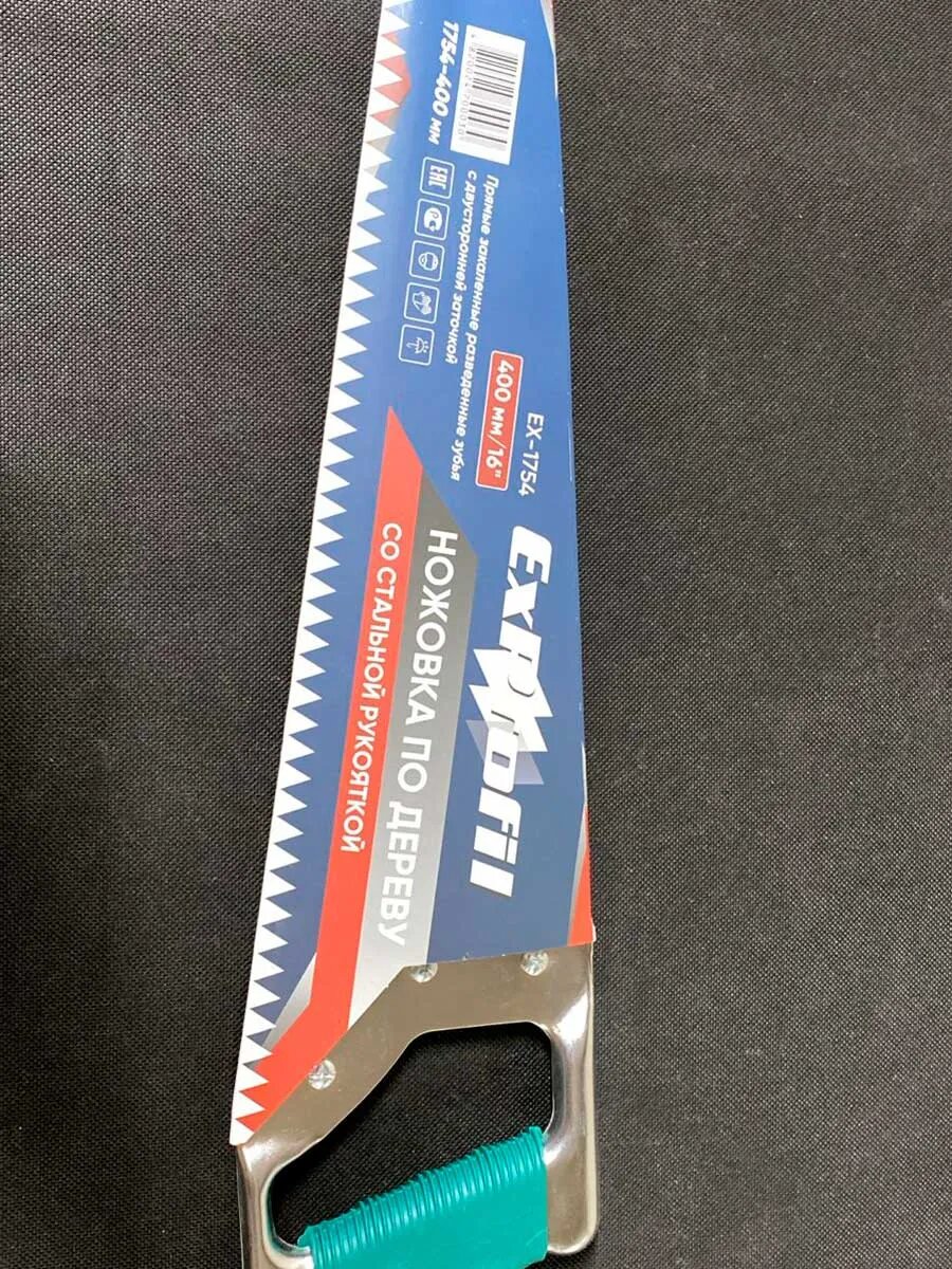 Отзывы на Ножовка по дереву EX-1744 400 мм, рукоятка из ударопрочного пластика, каленые зубья с шагом 6-7 TPI