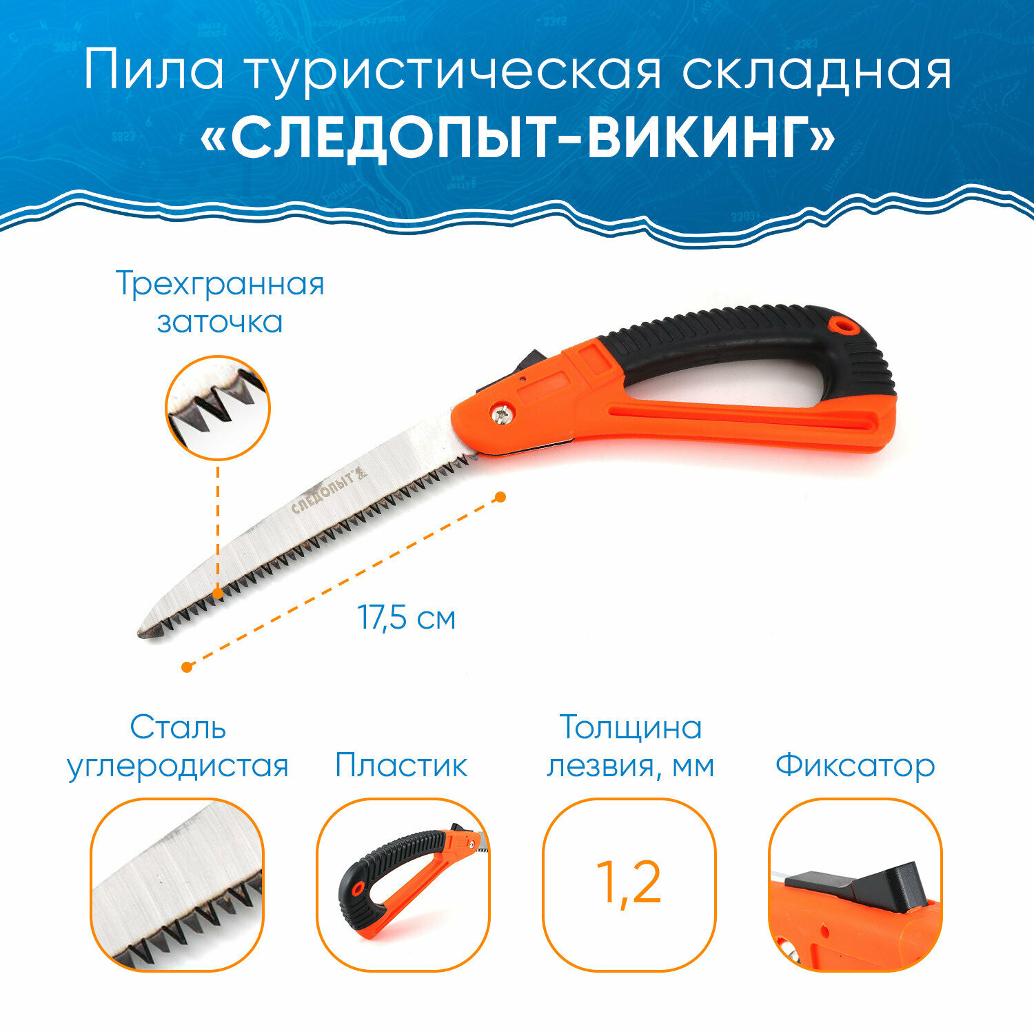 Пила туристическая складная 17,5 см лезвие, Ножовка садовая складная для обрезки деревьев, веток, пила по дереву информация: