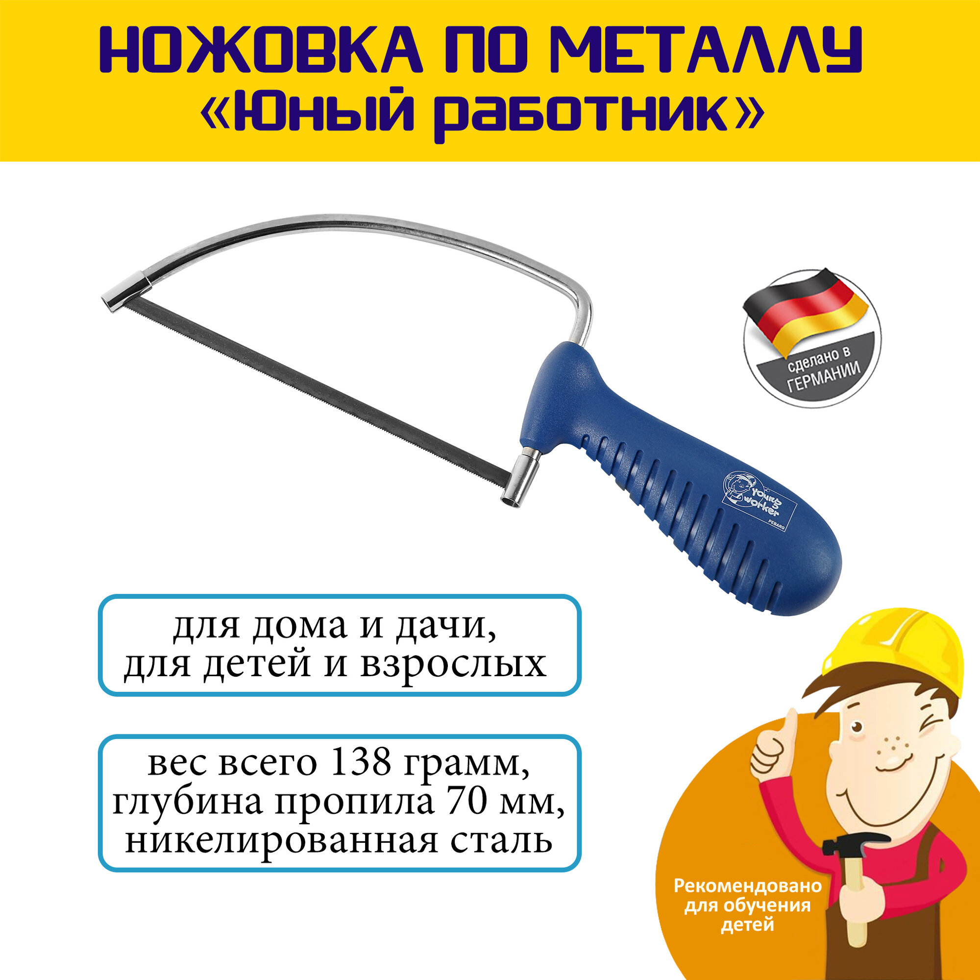 Ножовка по металлу с синей ручкой (Юный работник) Pebaro (720+YW) информация:
