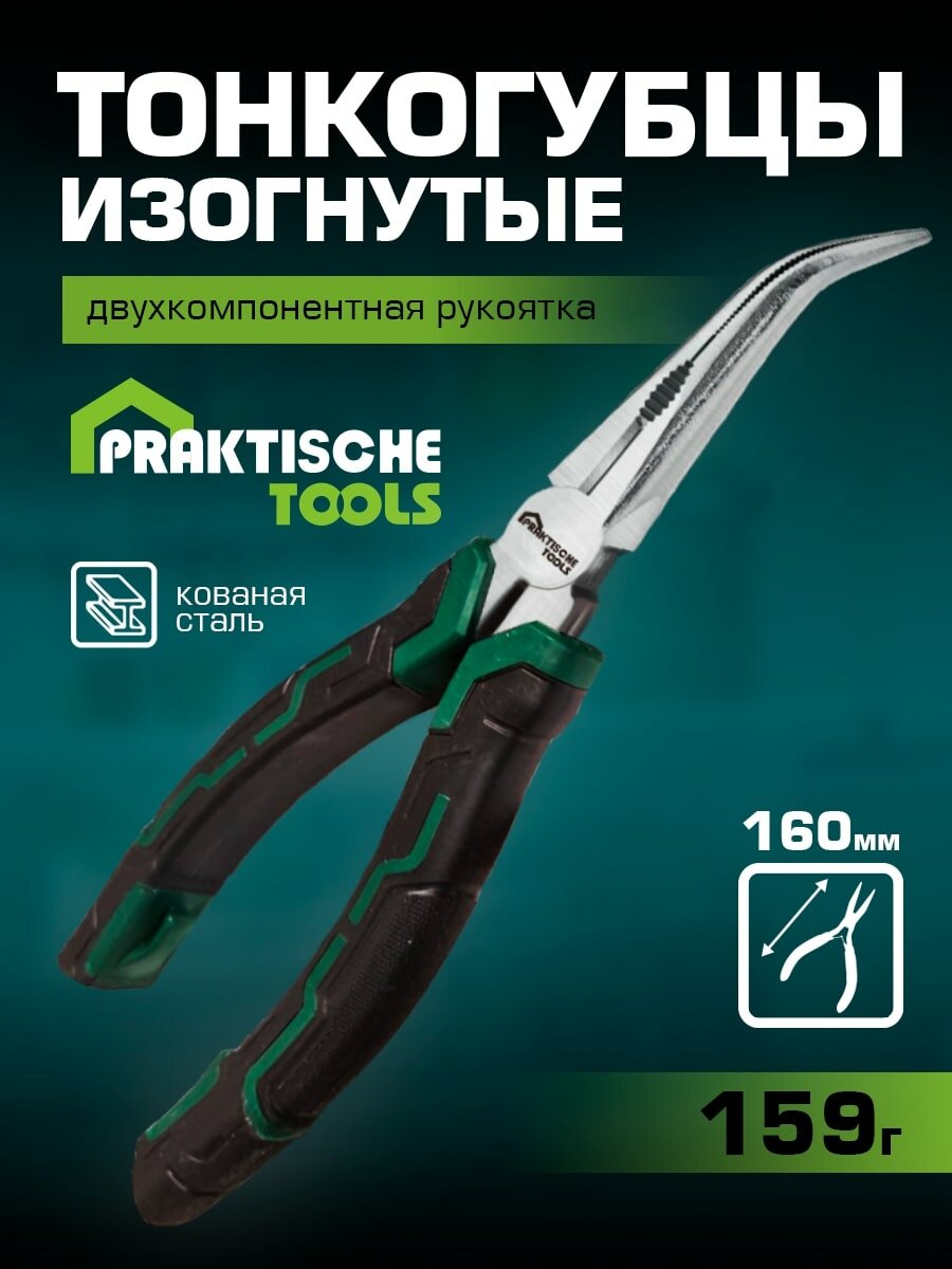 10 цен на Тонкогубцы изогнутые `PRAKTISCHE TOOLS`, кованая сталь, двухкомпонентные рукоятки, 160 мм