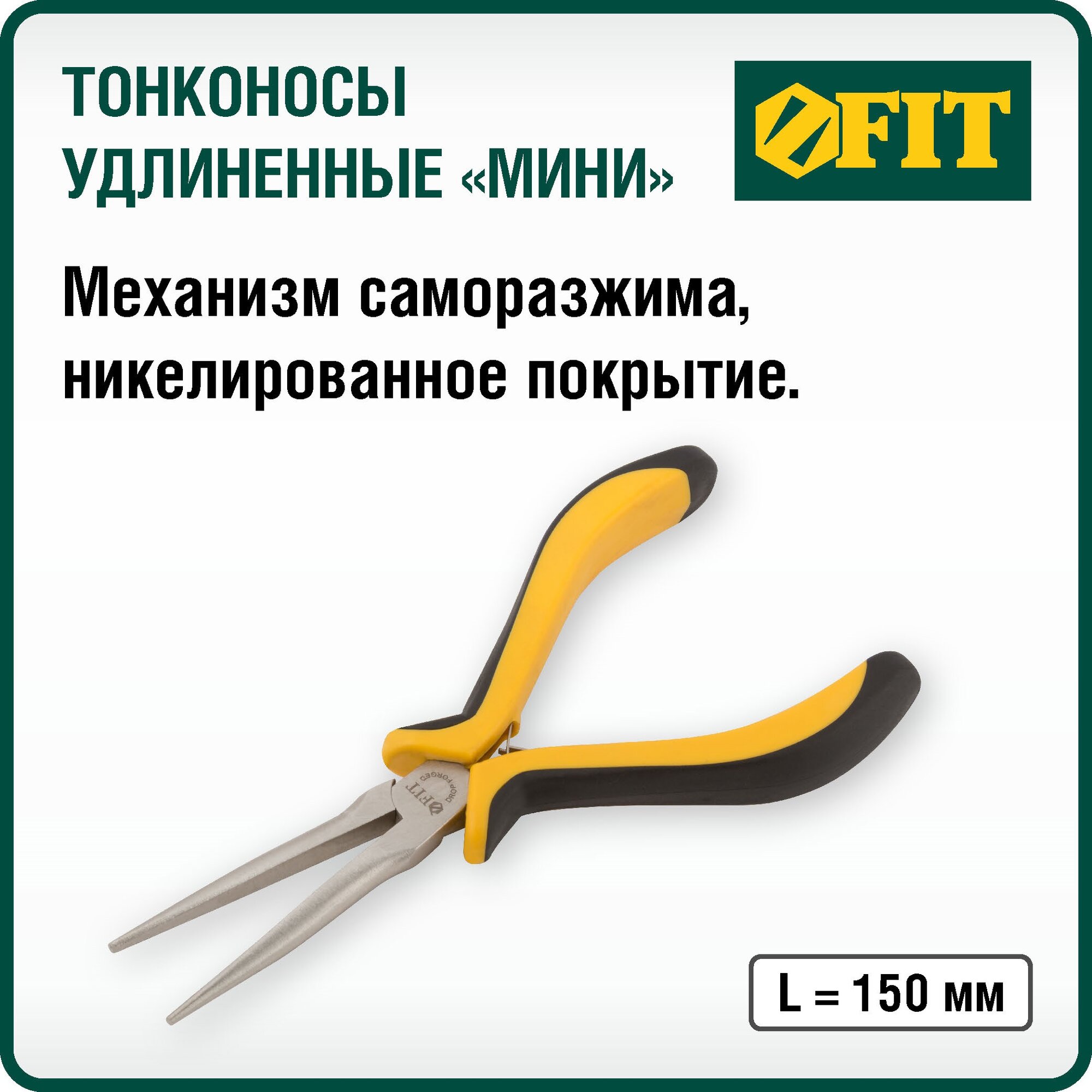 Тонконосы, тонконосы мини FIT 51636 удлиненные Профи, никелированное покрытие, черно-желтые мягкие ручки 150 мм информация: