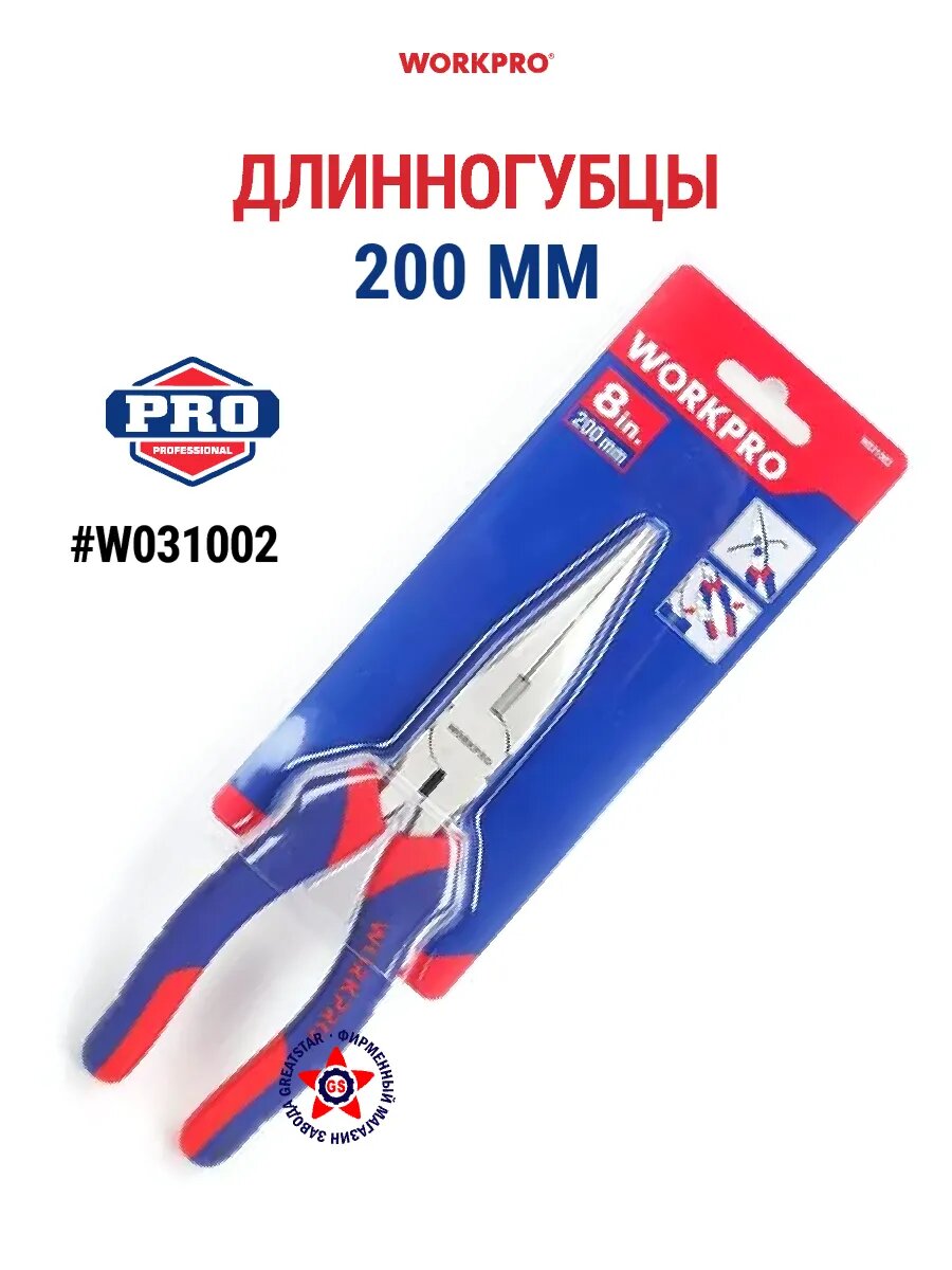 10 цен на Длинногубцы 200 мм W031002, антикоррозионное покрытие, WORKPRO, цвет синий/красный