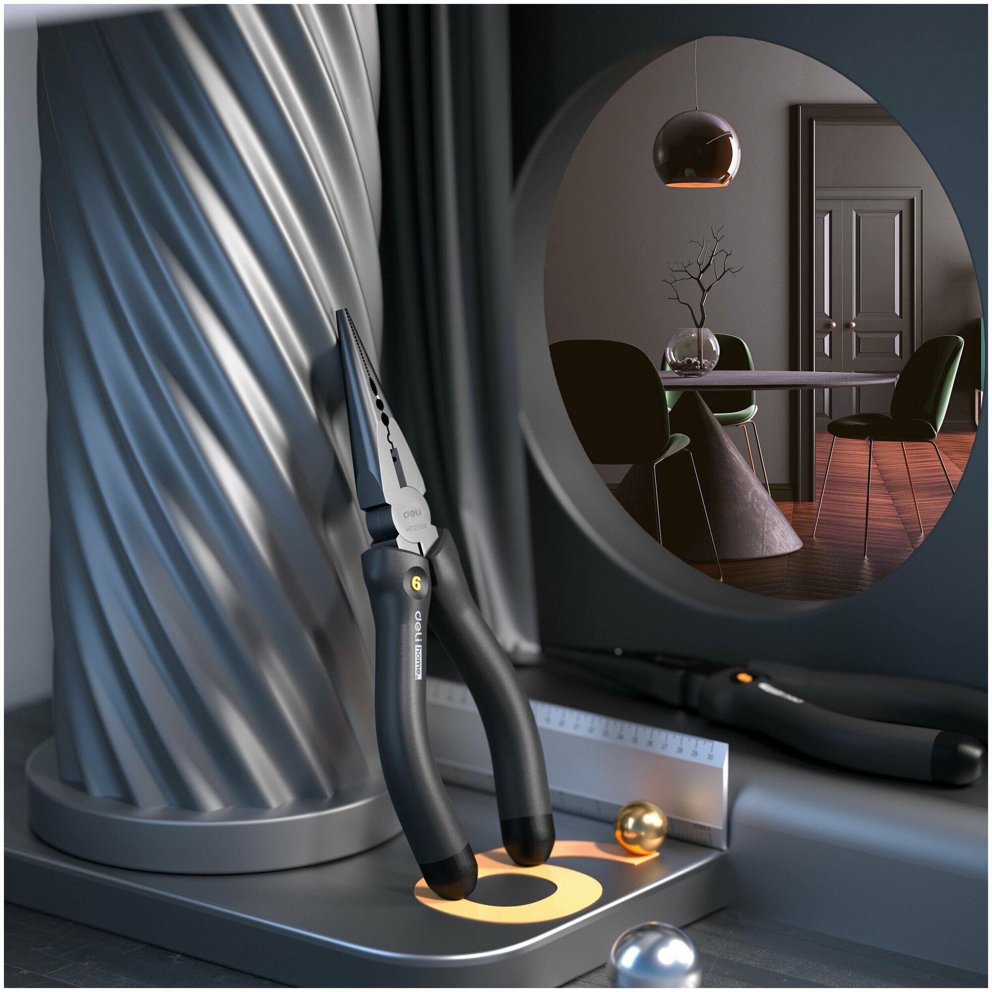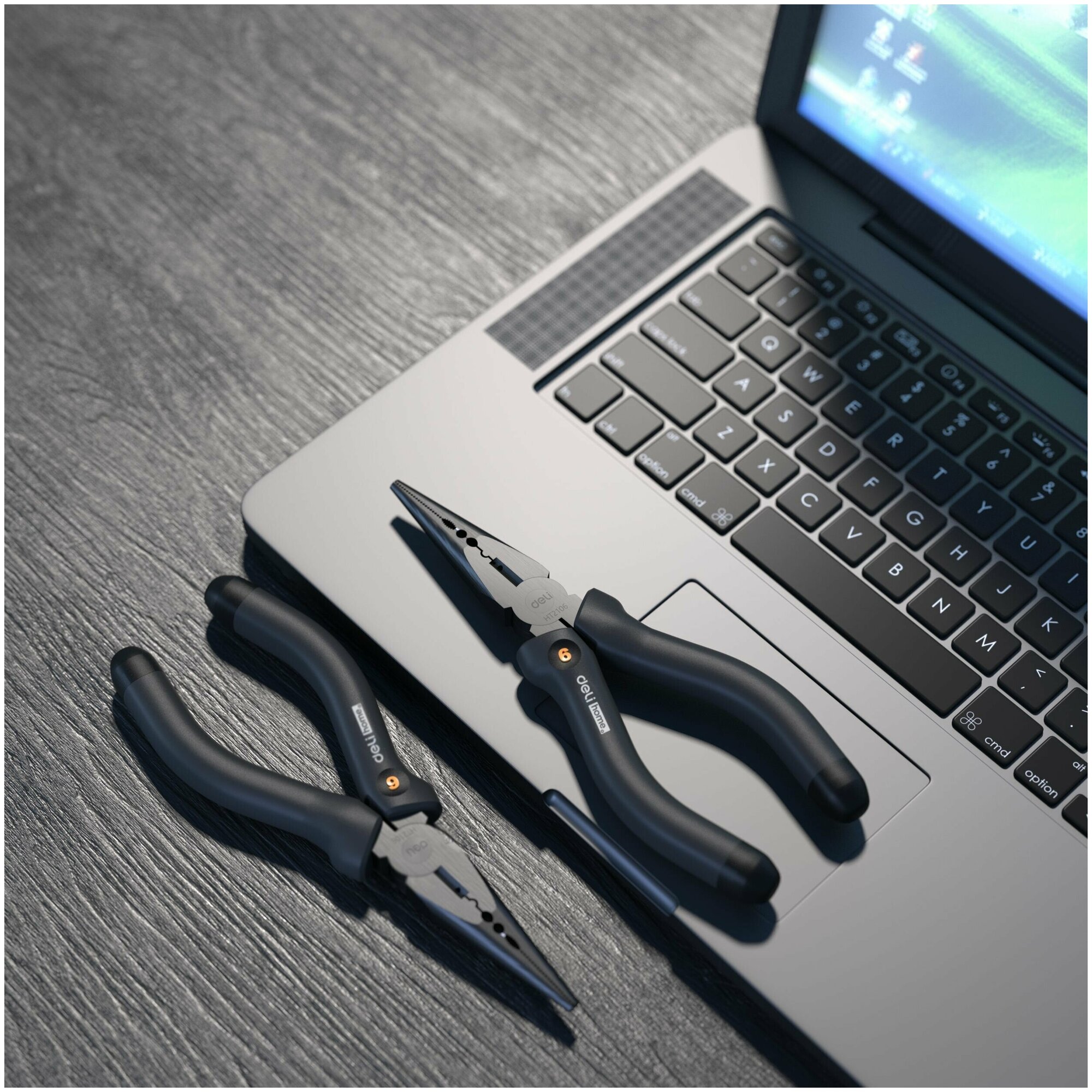 Удлиненные плоскогубцы Deli "Home Series Black" HT2106" (Эксклюзивный дизайн, софттач, возвратная пружина) информация: