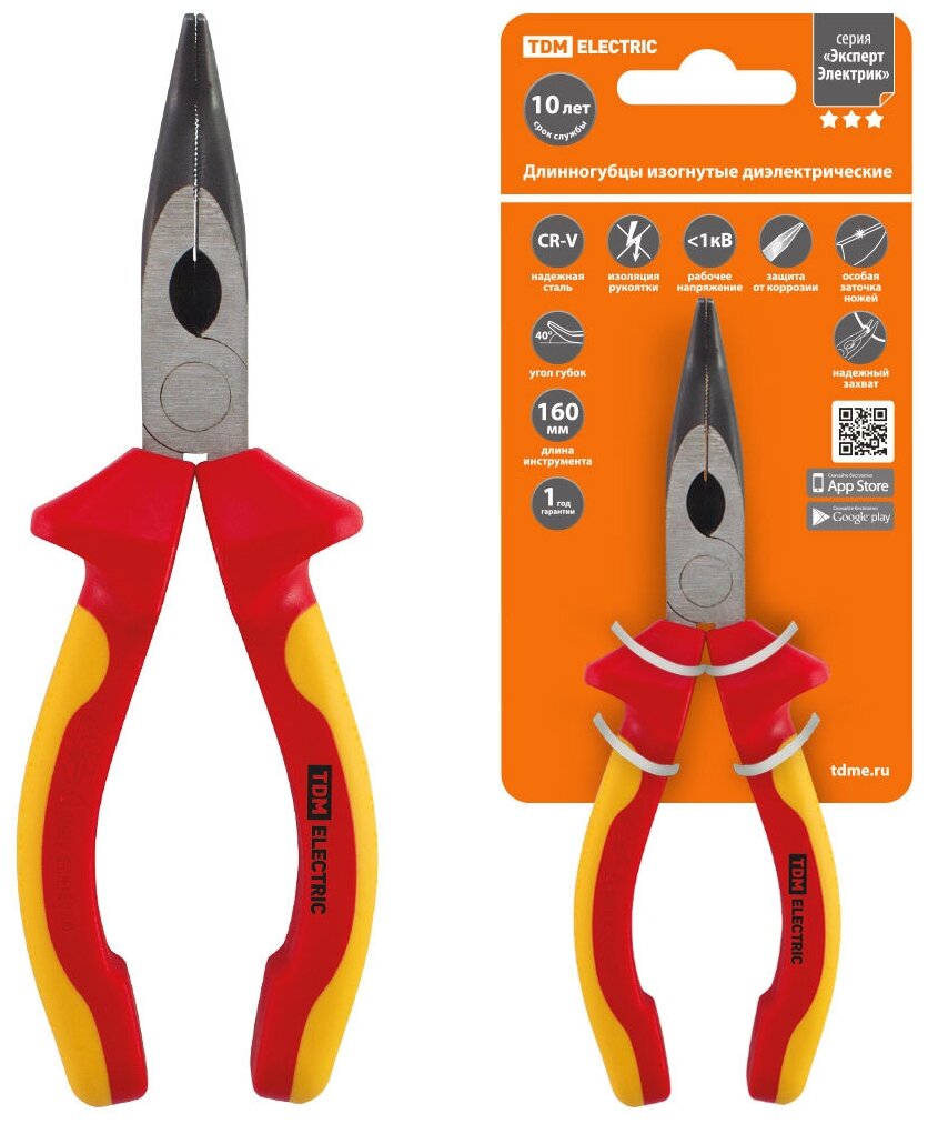 Отзывы на Длинногубцы изогнутые диэлектрические, 160 мм, 1000 В, CR-V, «ЭкспертЭлектрик» TDM