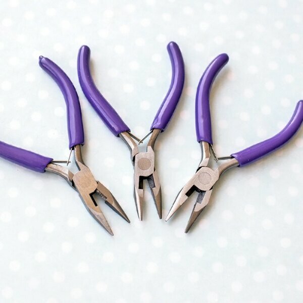 Набор инструментов для бижутерии (тонкогубцы-утконосы, круглогубцы, кусачки-бокорезы), сталь, розовые