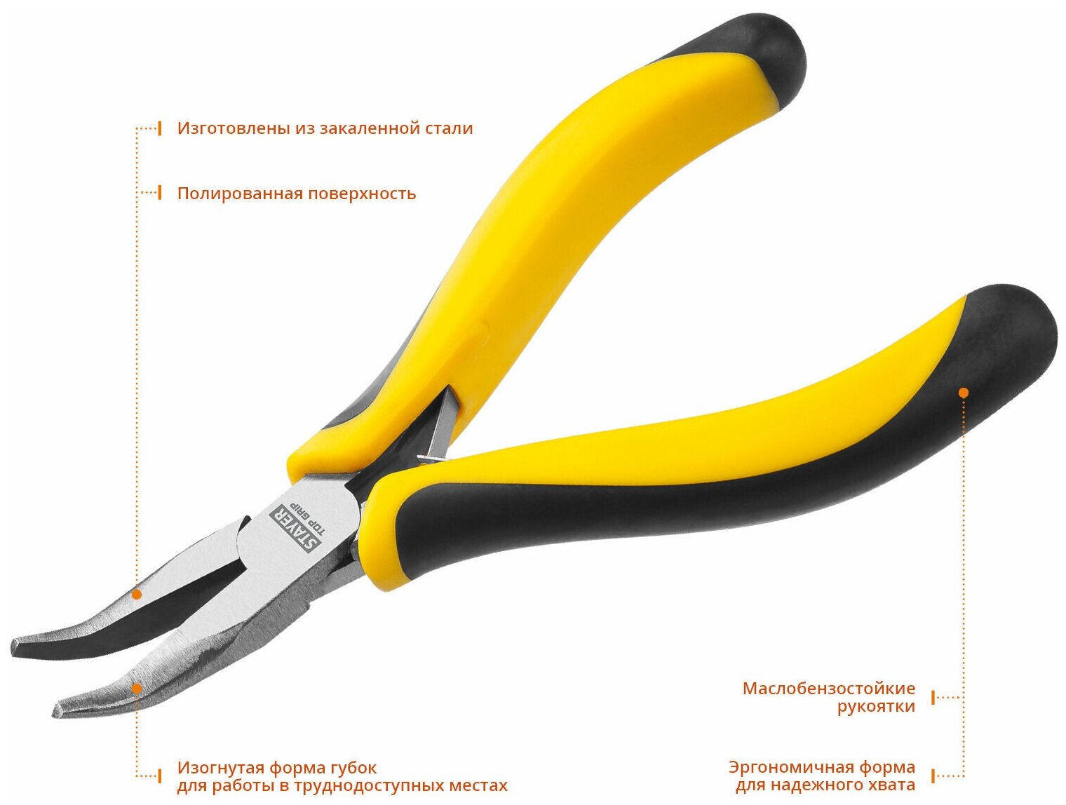 Мини тонкогубцы изогнутые STAYER 120 мм TopGrip информация: