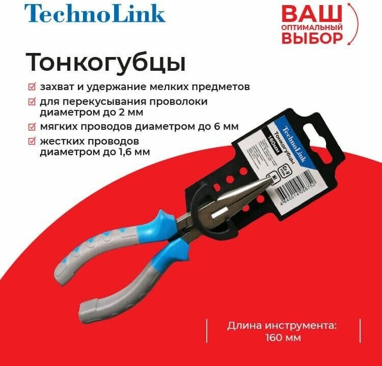 10 цен на Тонкогубцы TechniLink, с диэлектрическим покрытием, универсальные, 160 мм